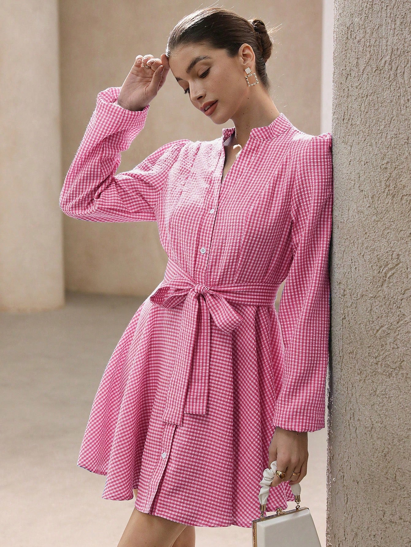 Aveloria Rosie Fashionable Sweet Romantic French Style Plaid Picnic Date Versatile V-Neck Button-Up Waist