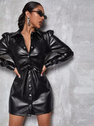 Button Front PU Leather Dress Without Belt