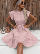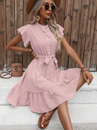 Clasi Polka Dot Print Ruffle Hem Belted Dress