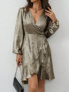 Clasi Women's V-Neck Long Sleeve Tie-Up Casual Midi Dress For New Year Holiday Party Clothes