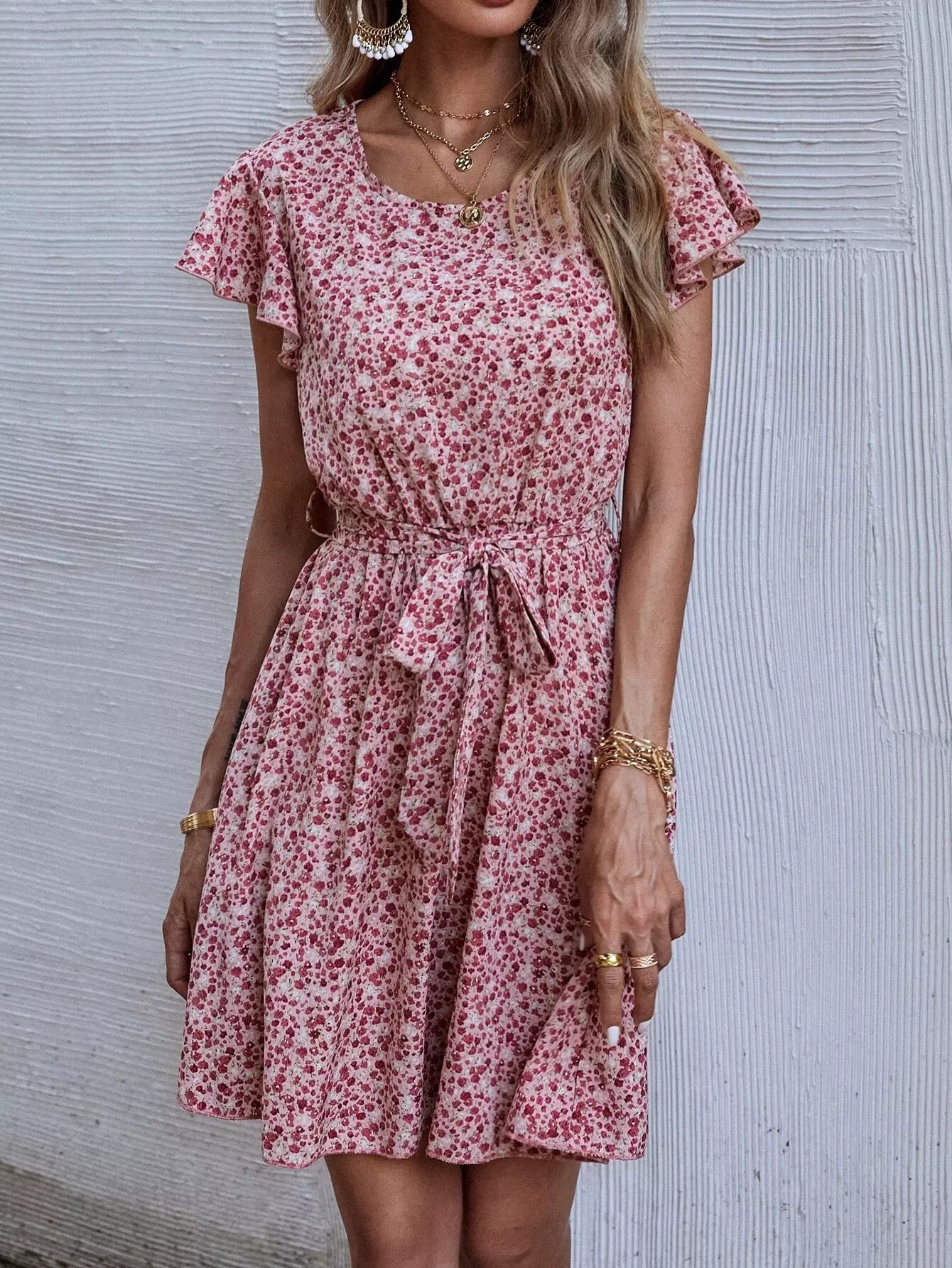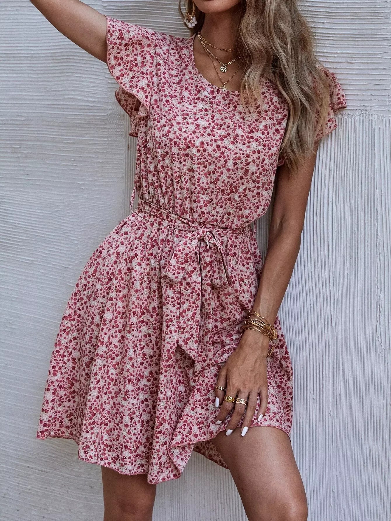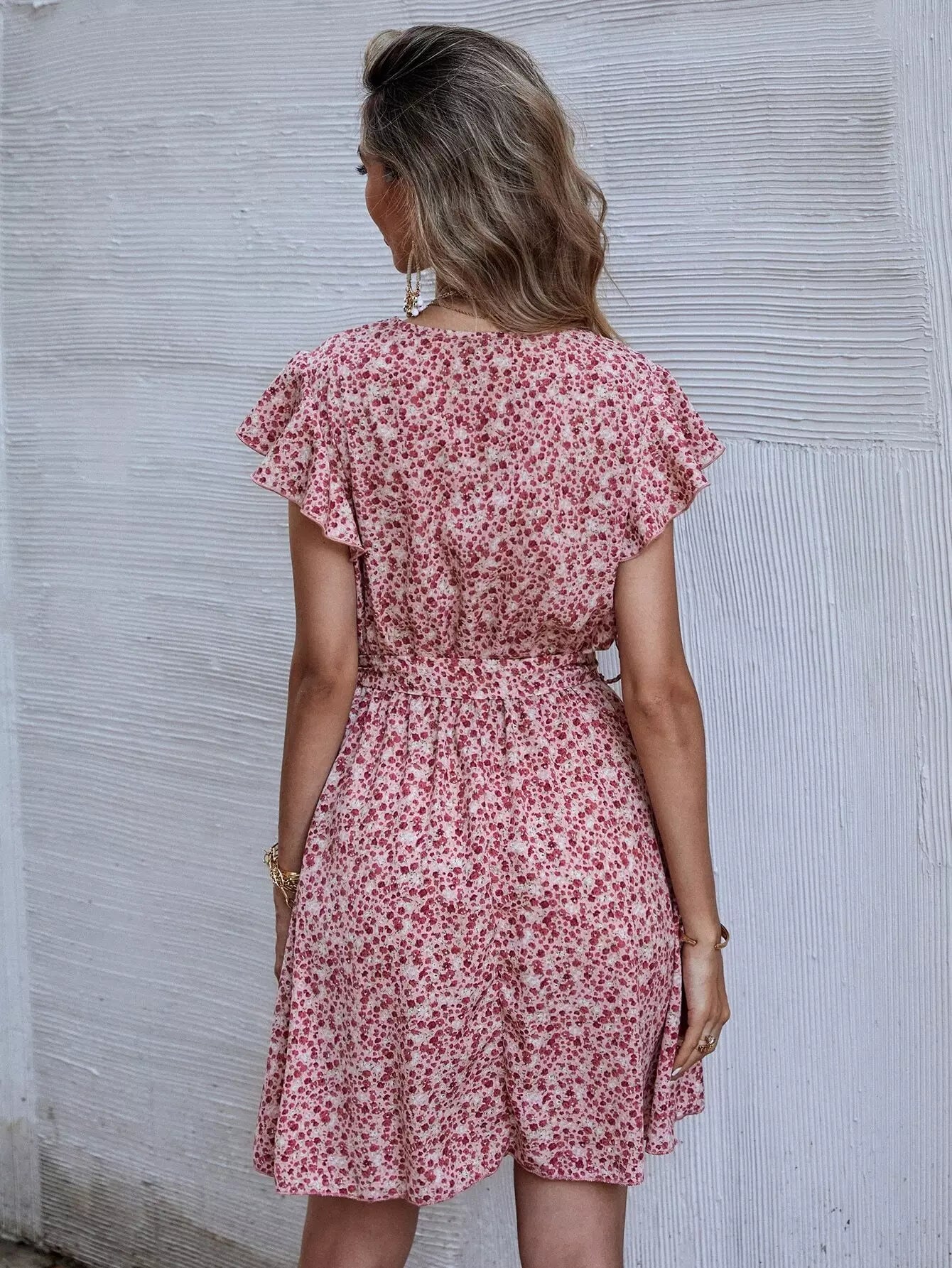 Ditsy Floral Butterfly Sleeve Dress Without Belt