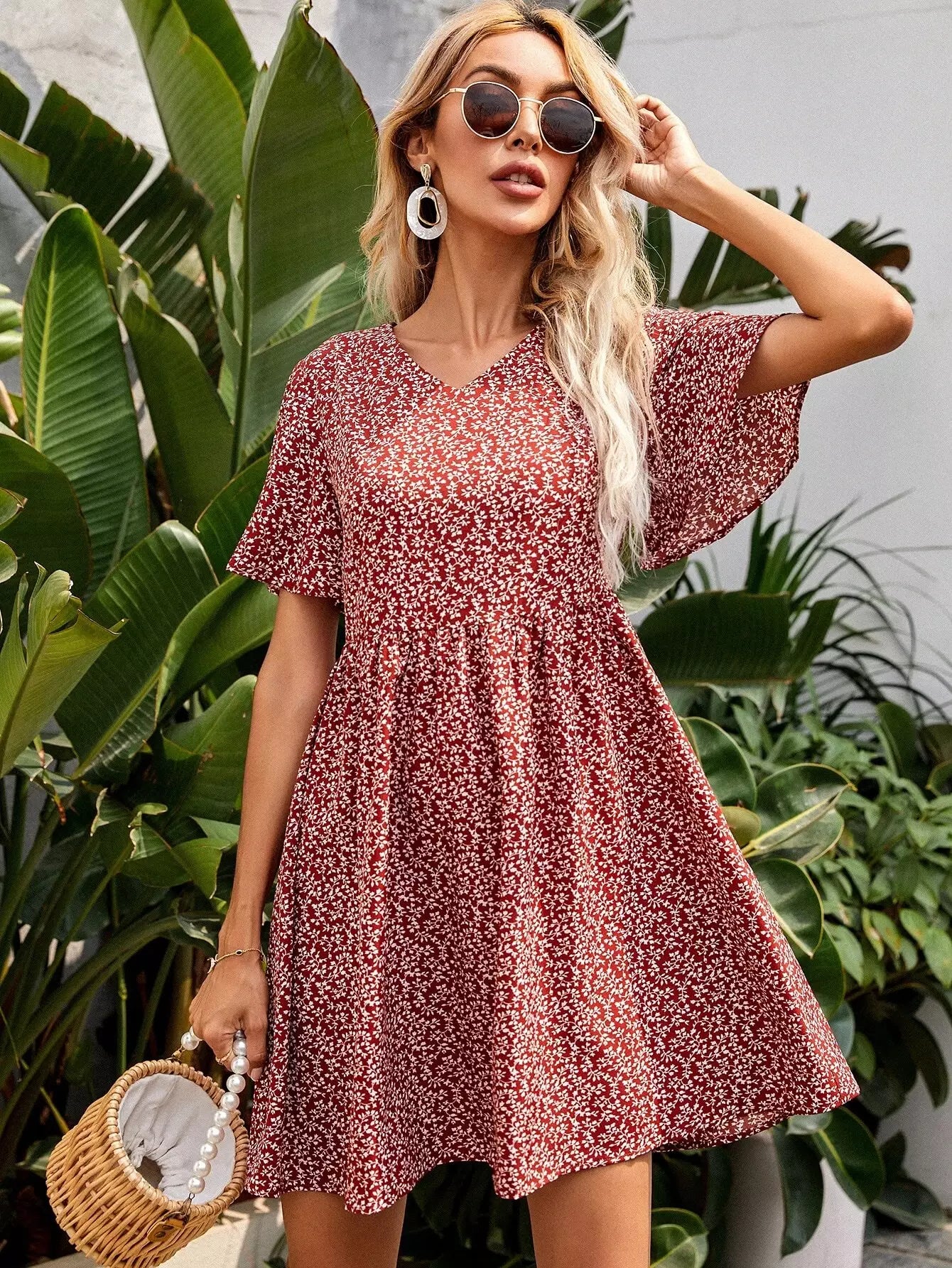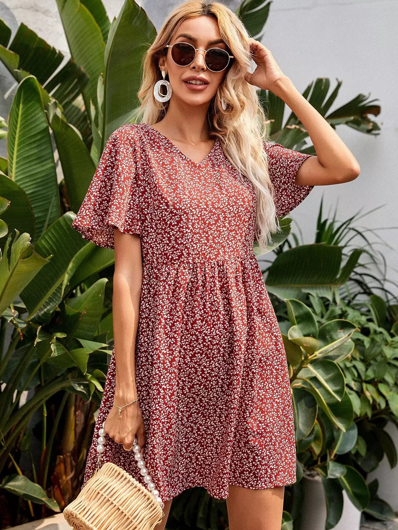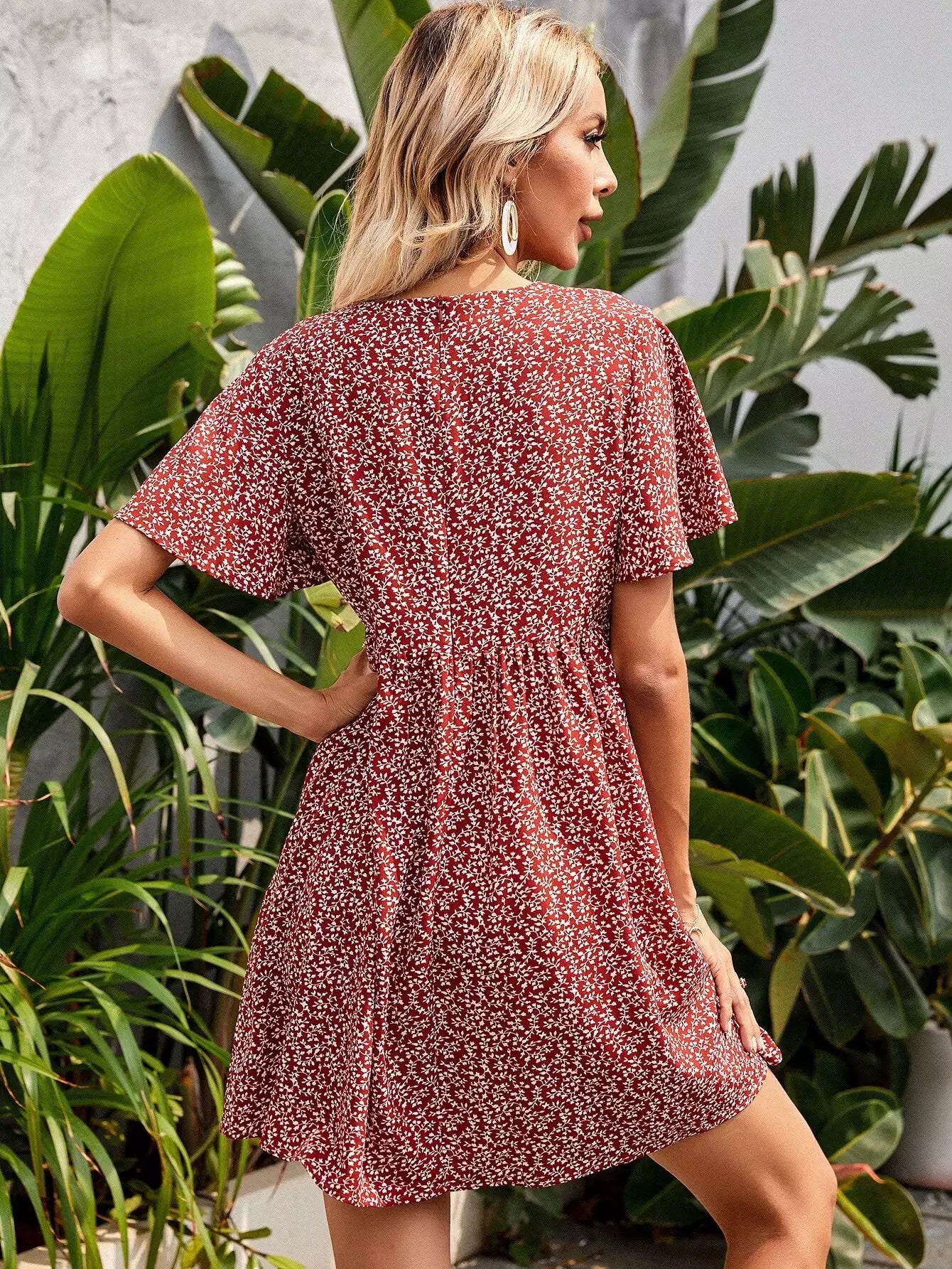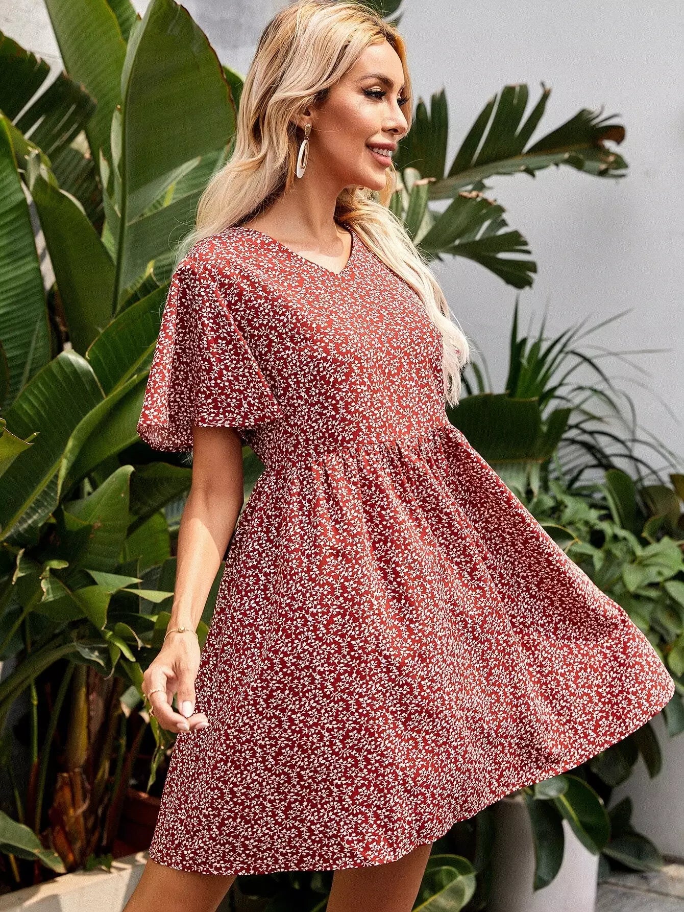 Ditsy Floral Butterfly Sleeve Dress