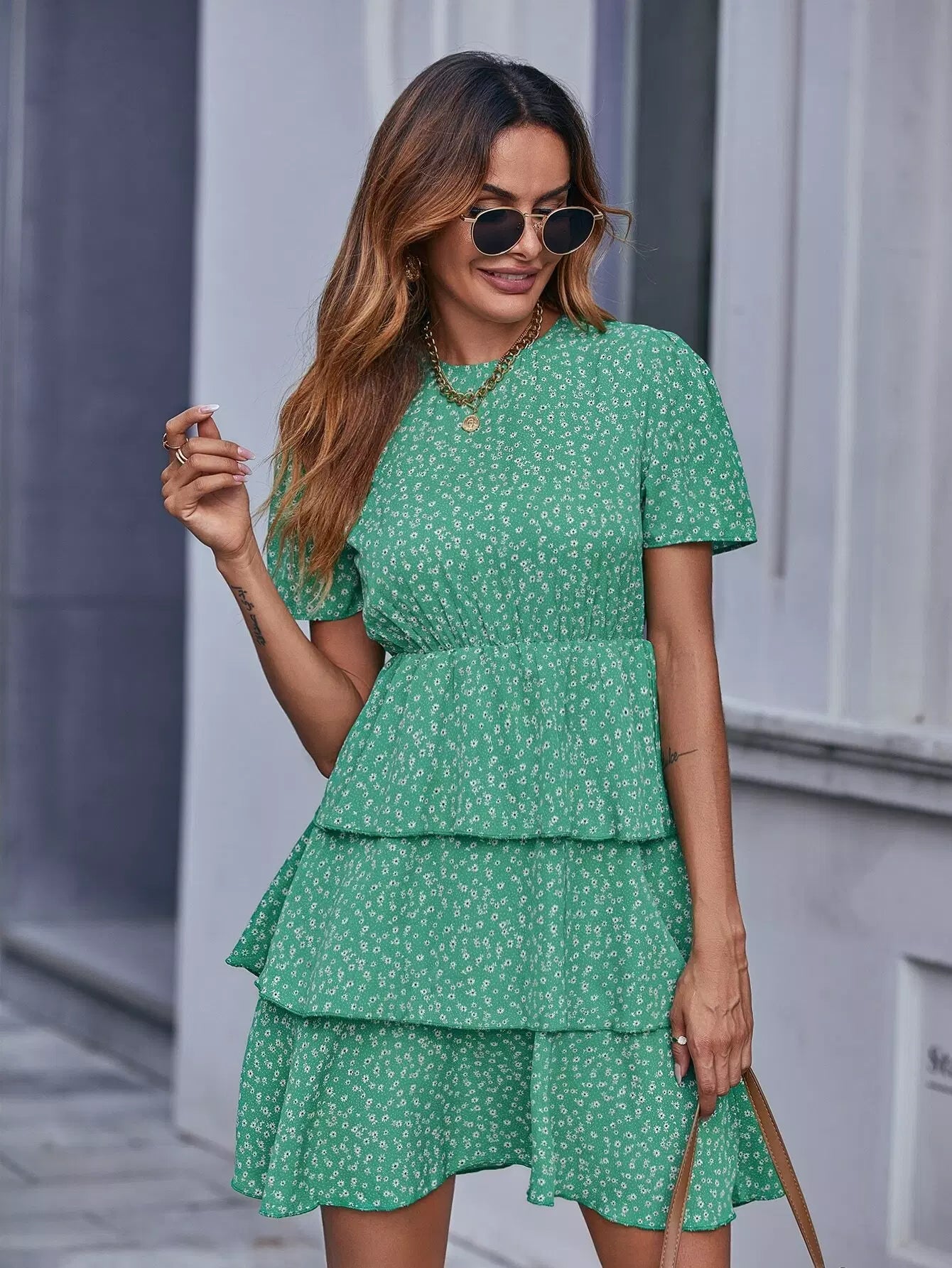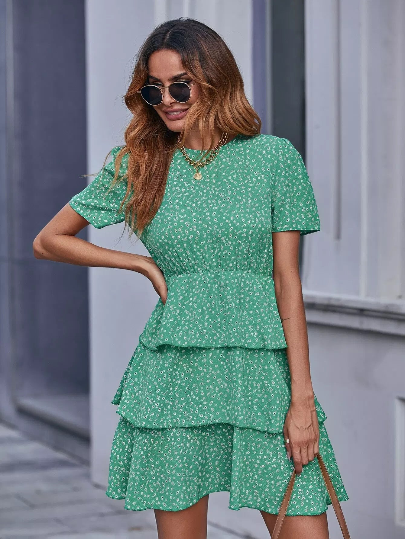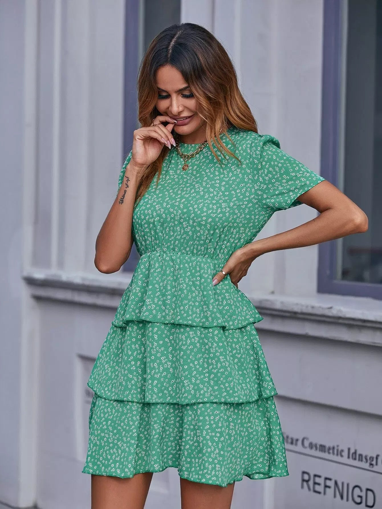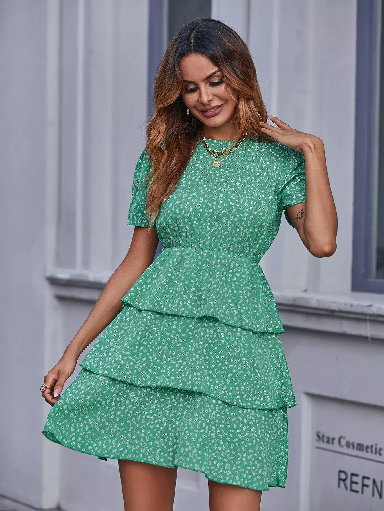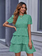 Ditsy Floral Print Layered Hem Dress