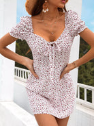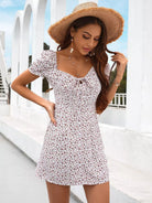 Ditsy Floral Puff Sleeve Knot Front Dress