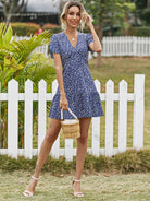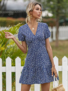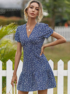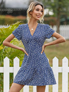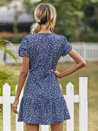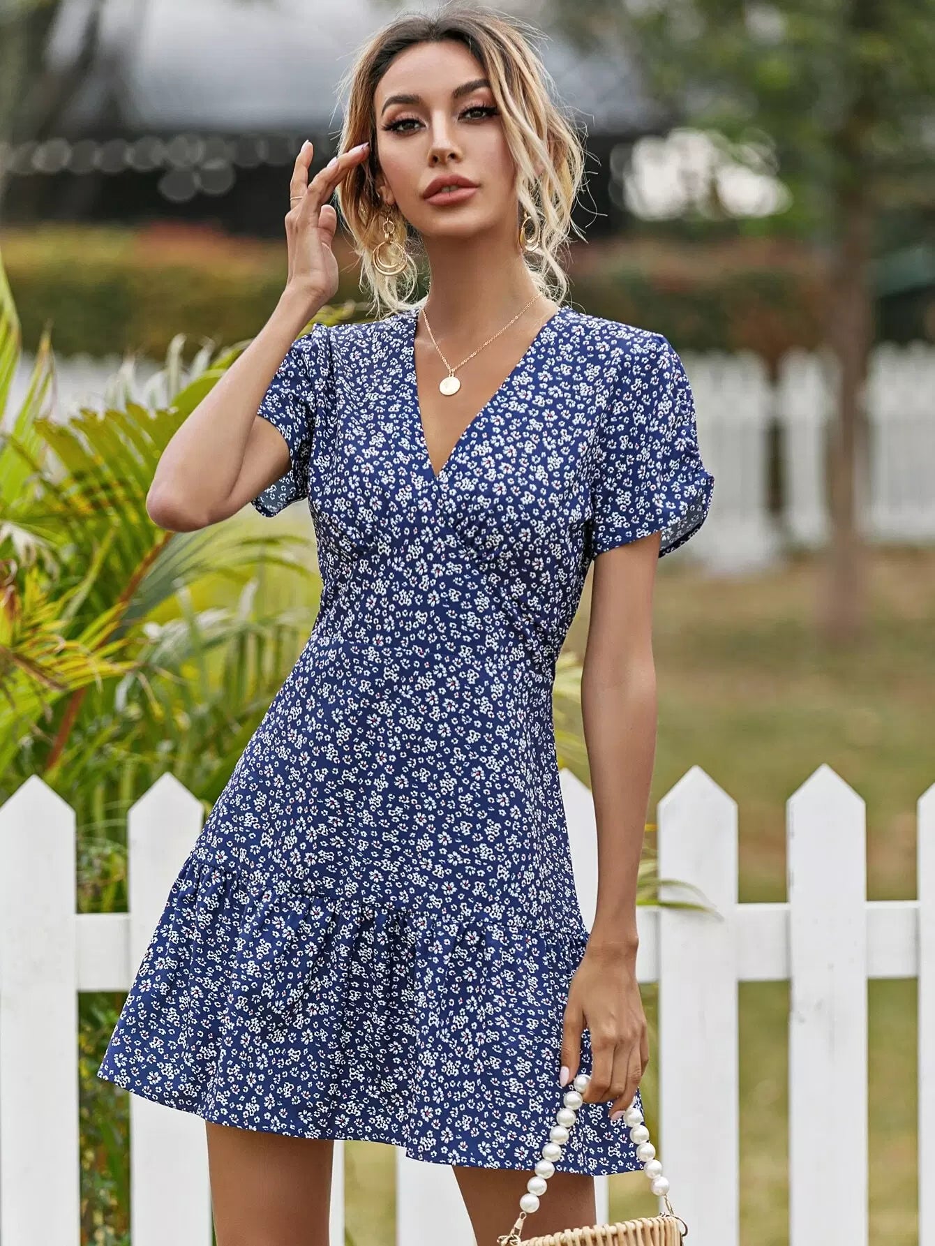 Ditsy Floral Ruched Sleeve Ruffle Hem Dress