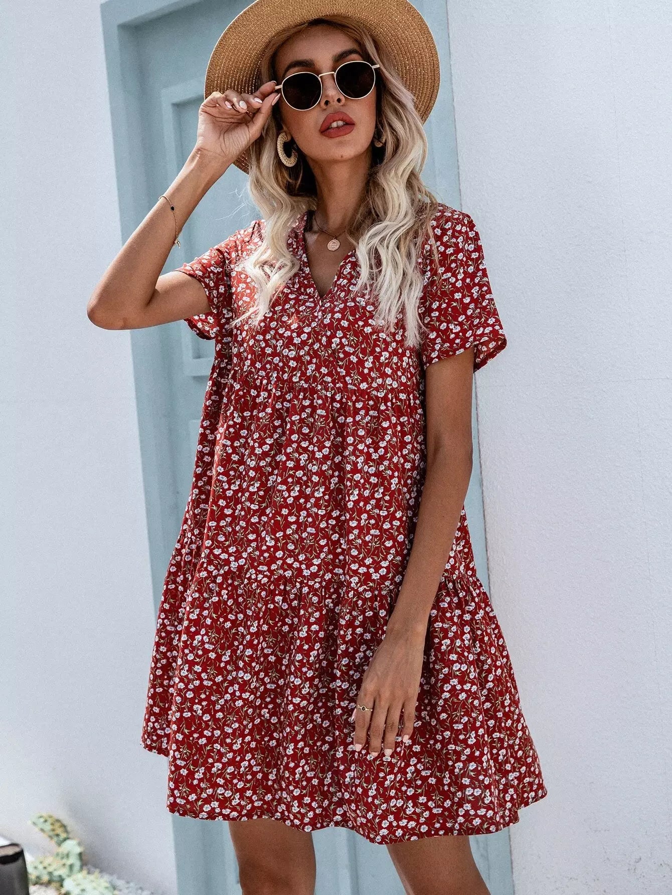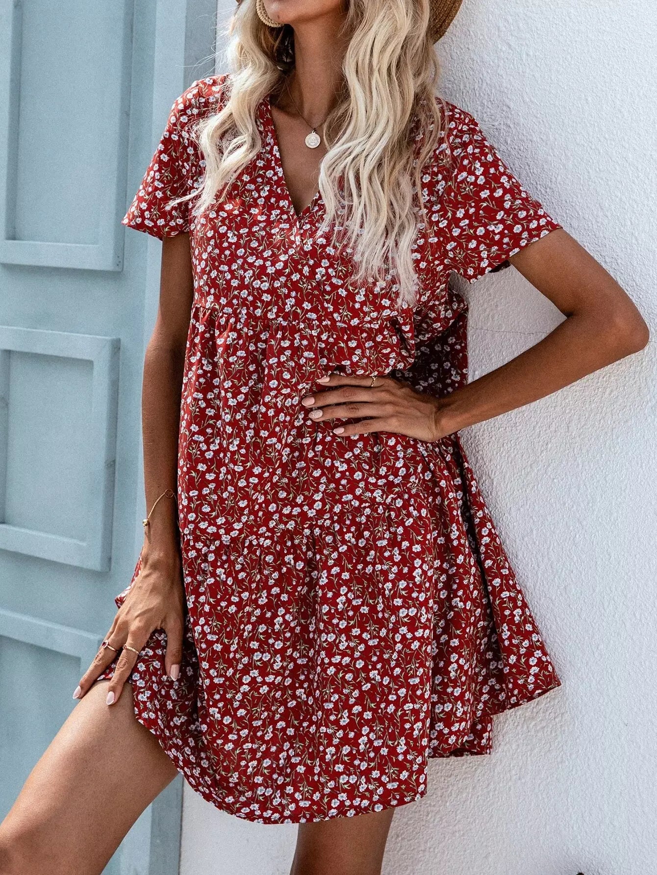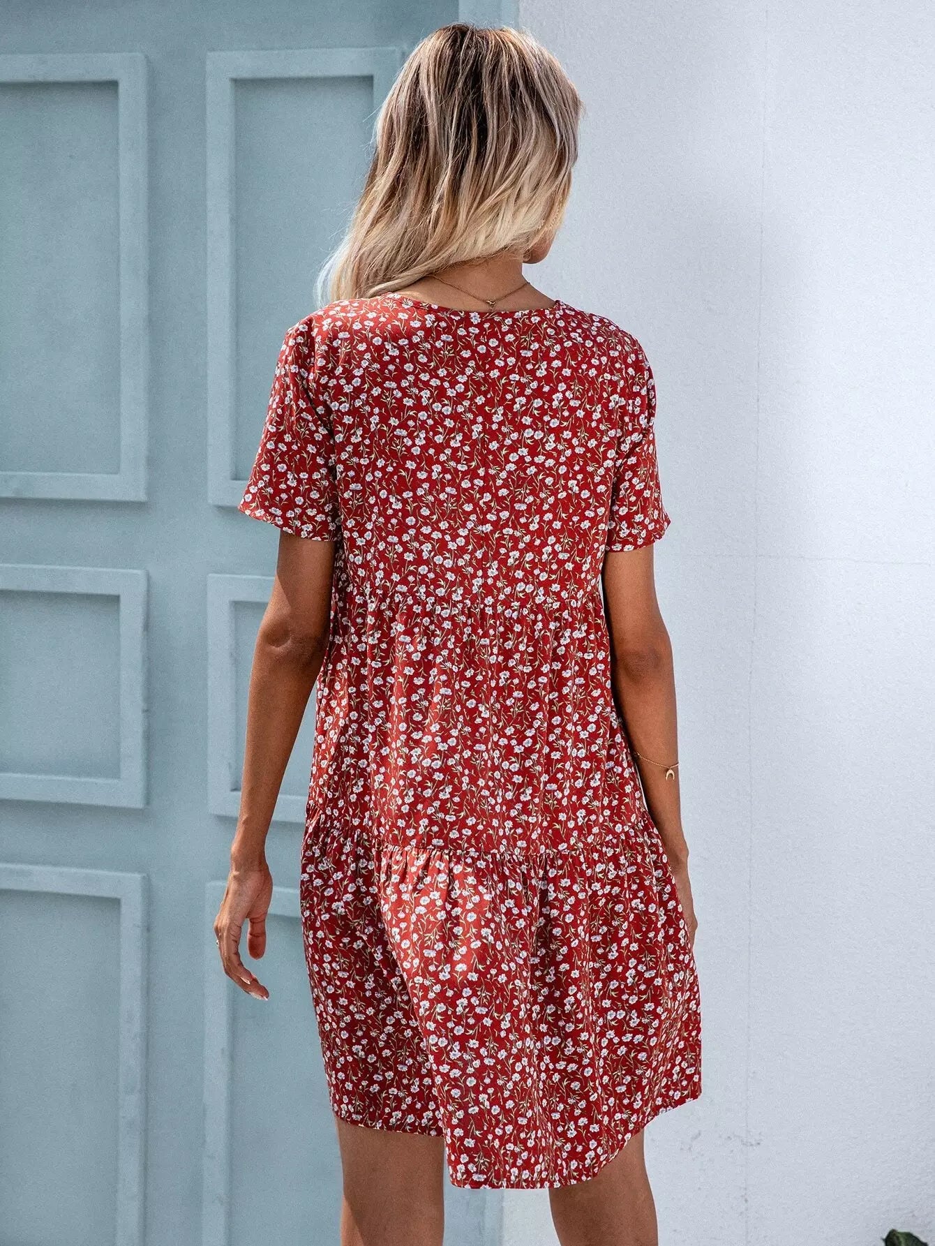 Ditsy Floral Surplice Front Babydoll Dress