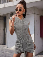 Drawstring Ruched Shoulder Pad Bodycon Dress
