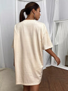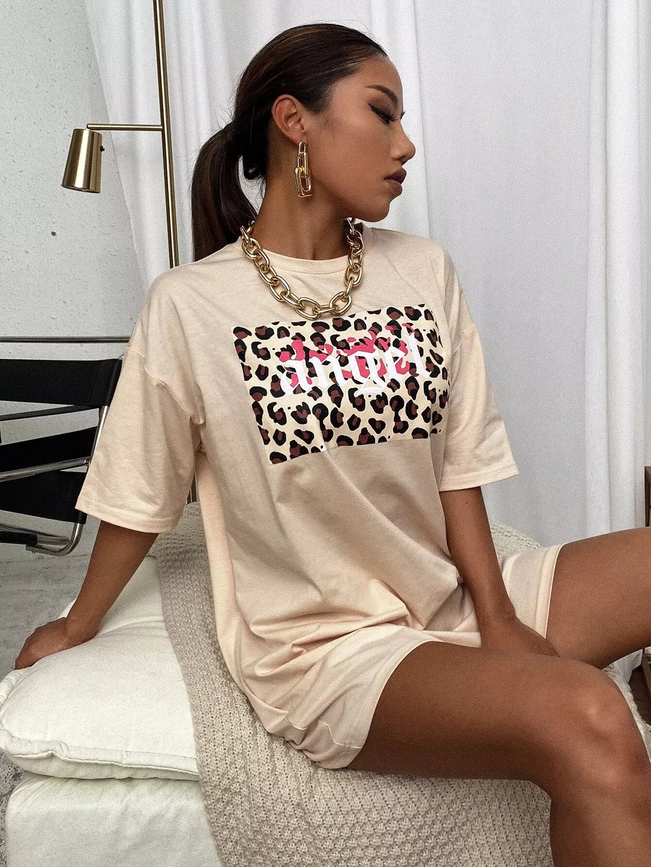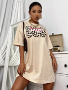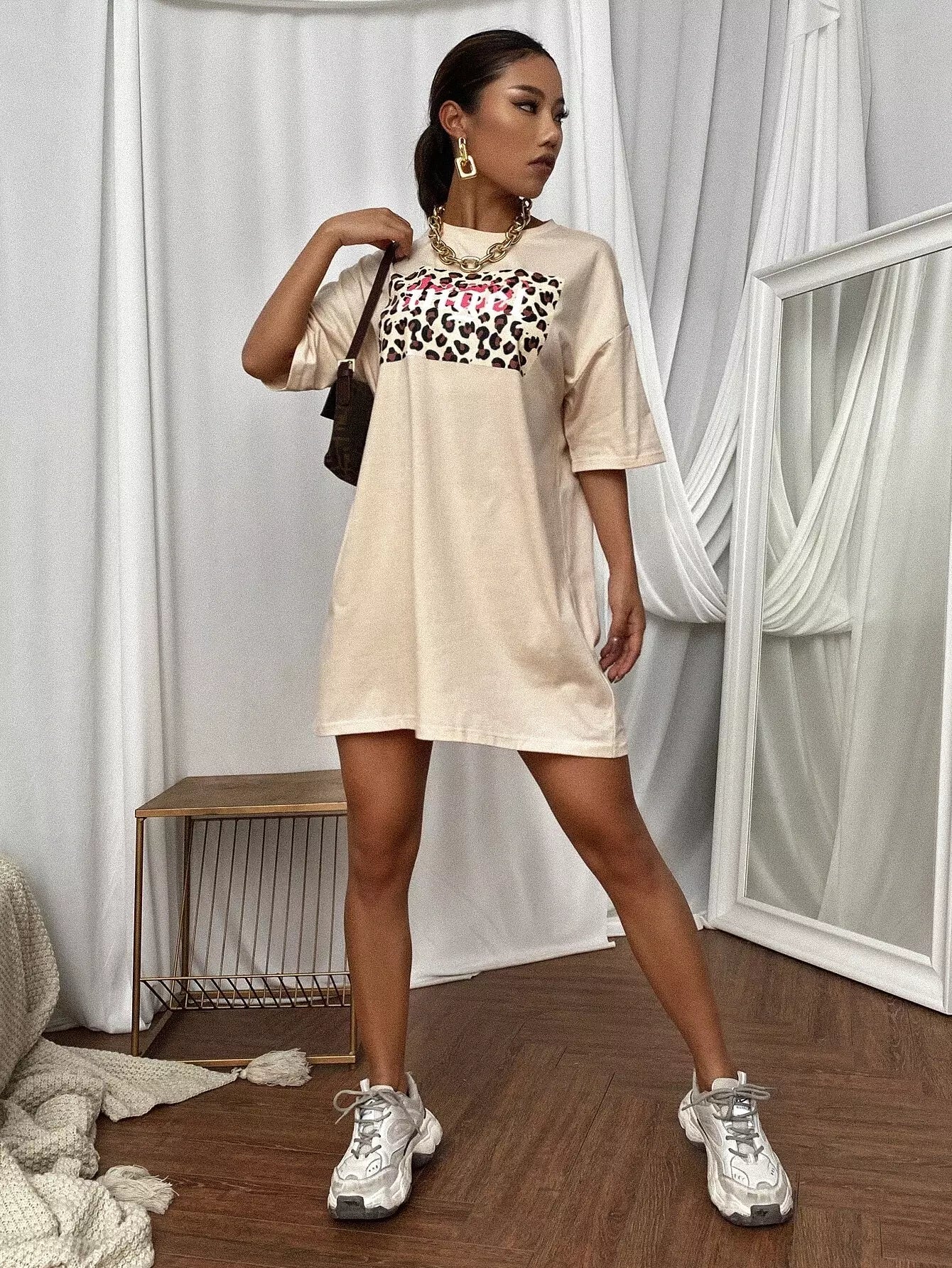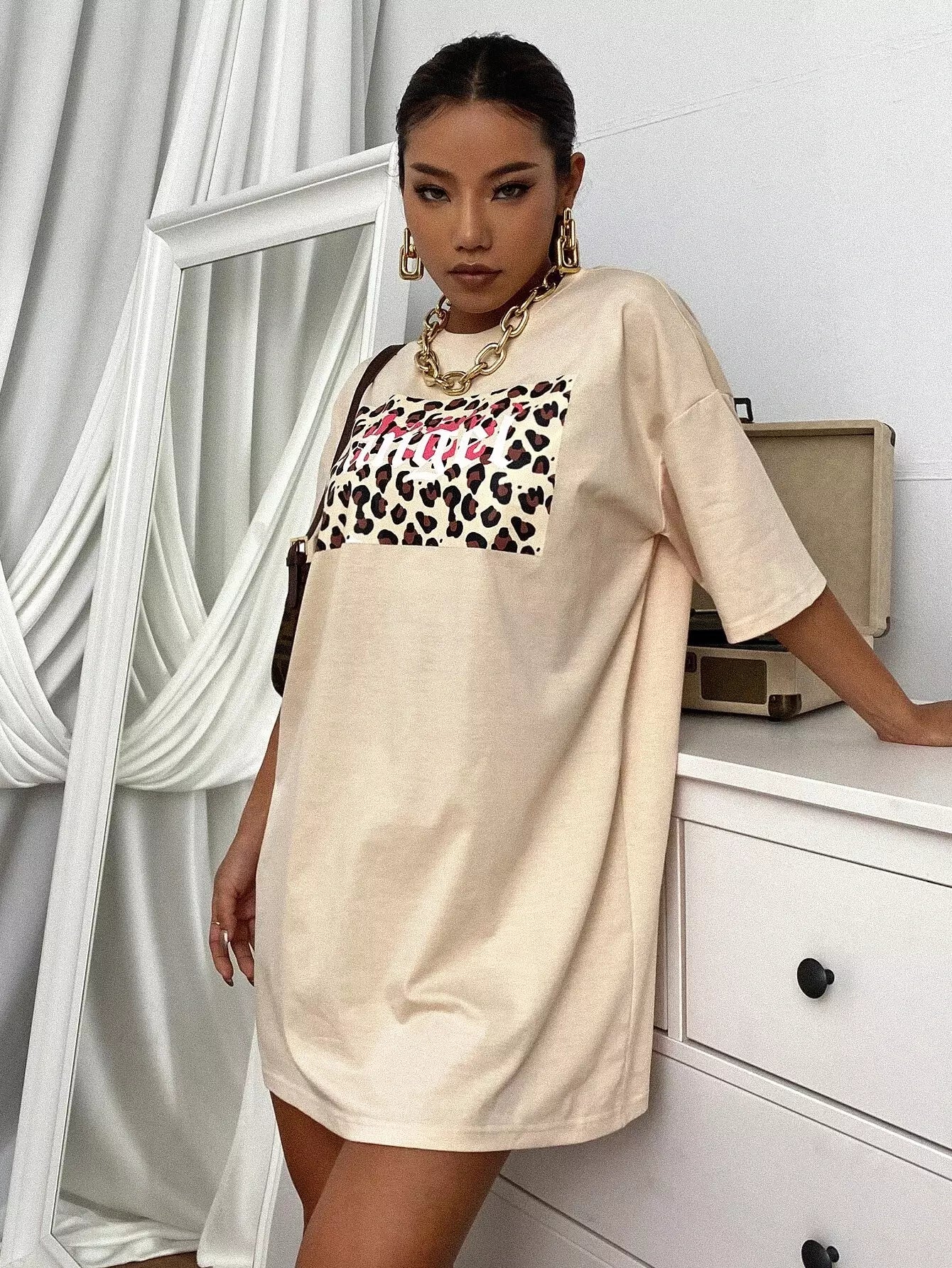 Drop Shoulder Letter & Leopard Print Tee Dress