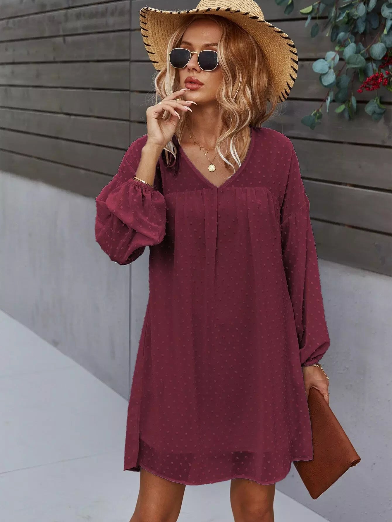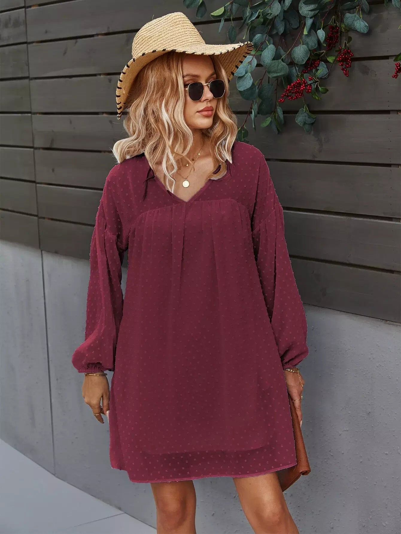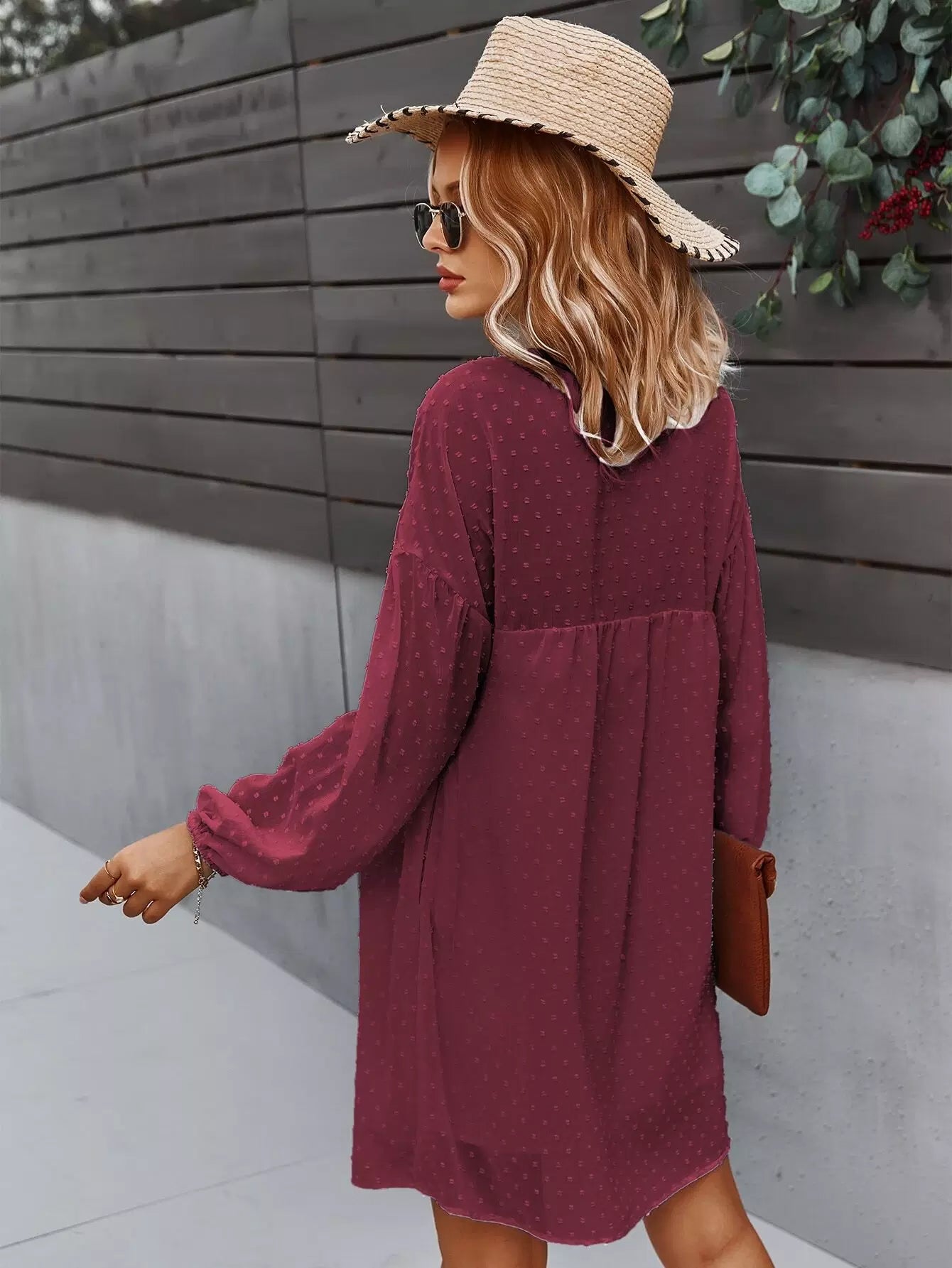 Drop Shoulder Swiss Dot Smock Dress