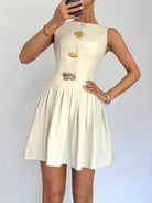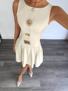 Essnce Women's Drop Waist Dress, Summer Metal Button Decor Pleated Sleeveless Mini Dress Women's Spring