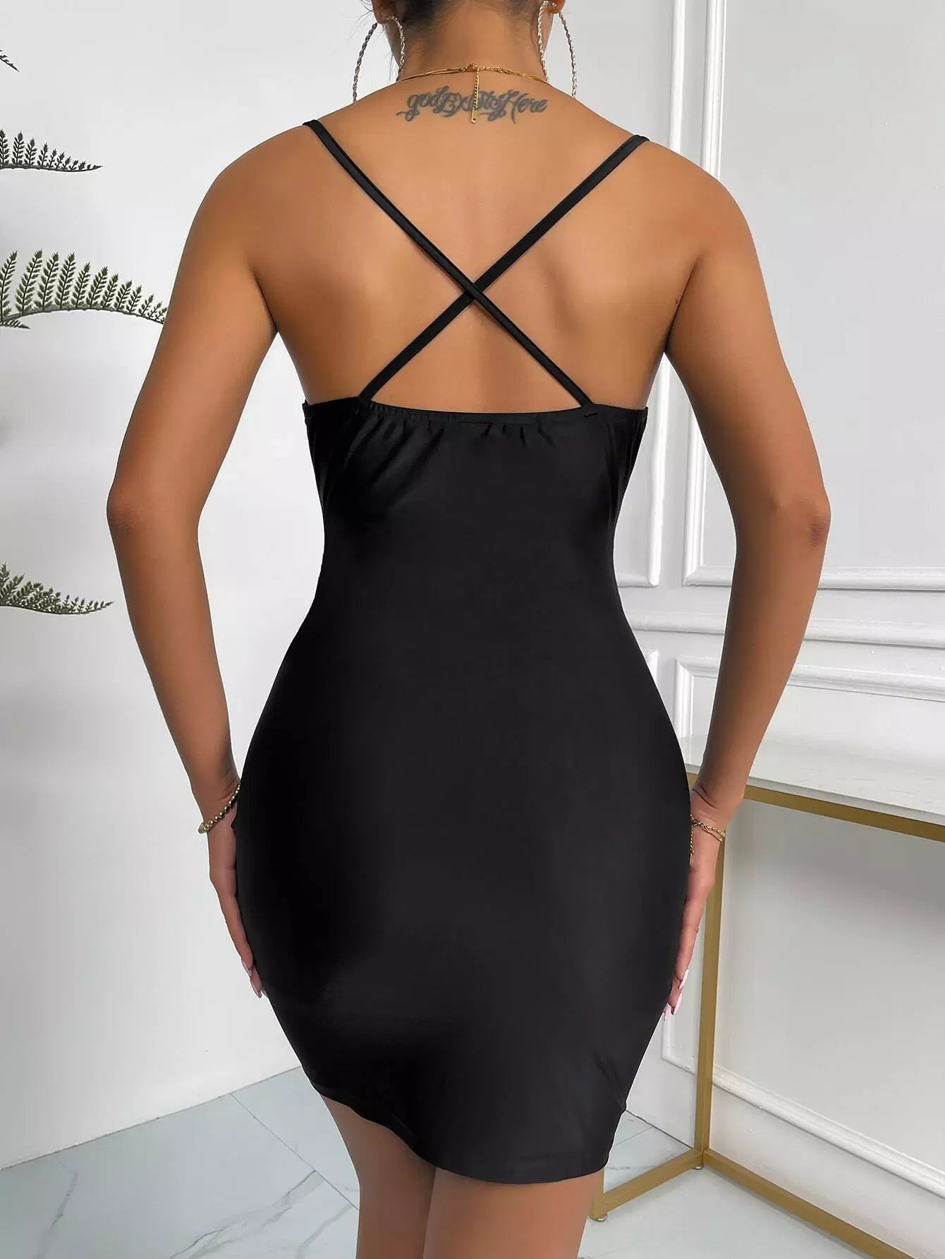Eyelet Lace Up Corset Crisscross Back Bodycon Dress