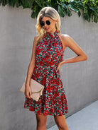 Floral Peekaboo Back Halter Dress