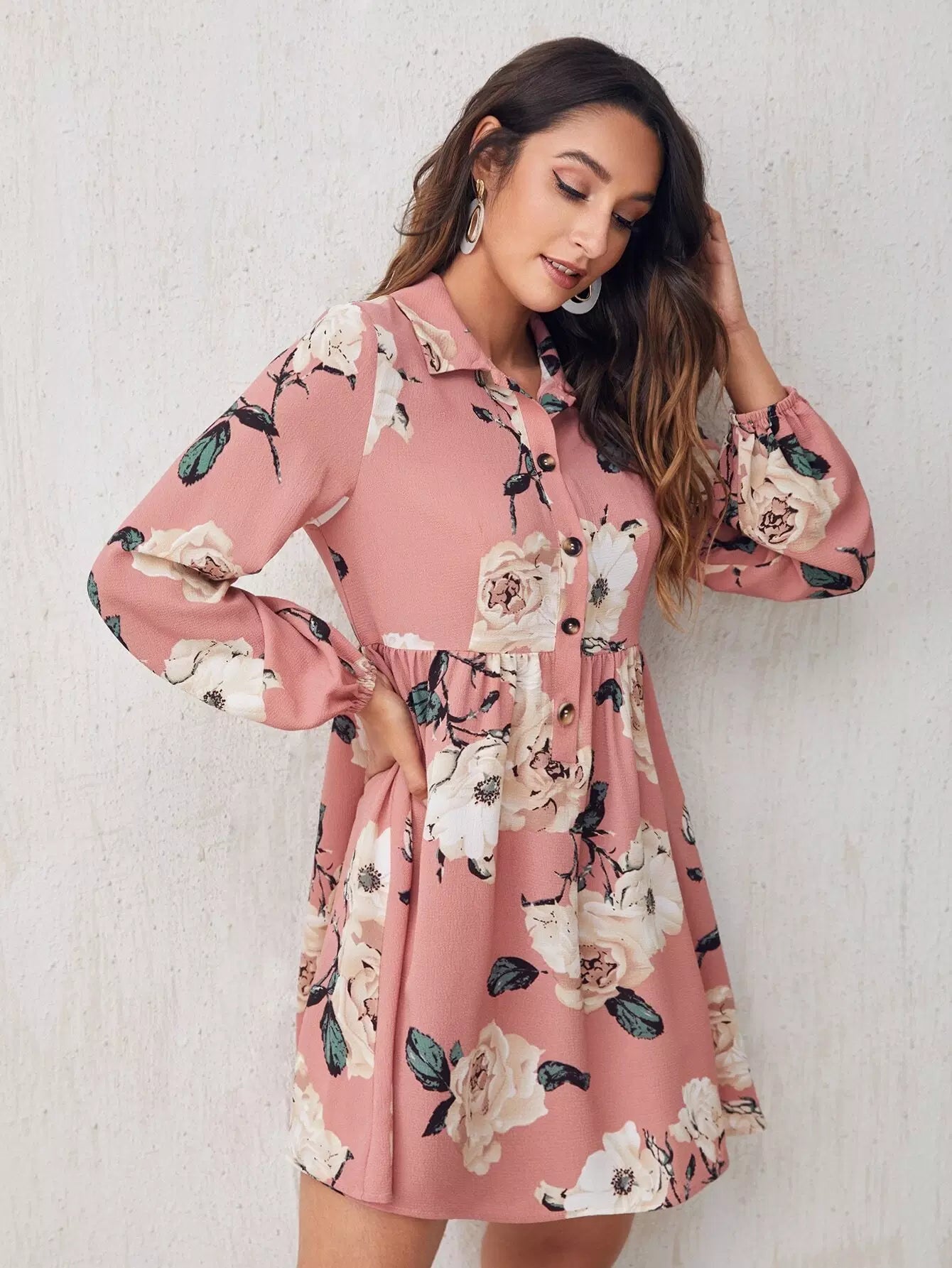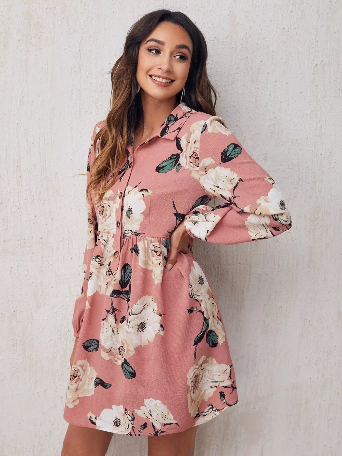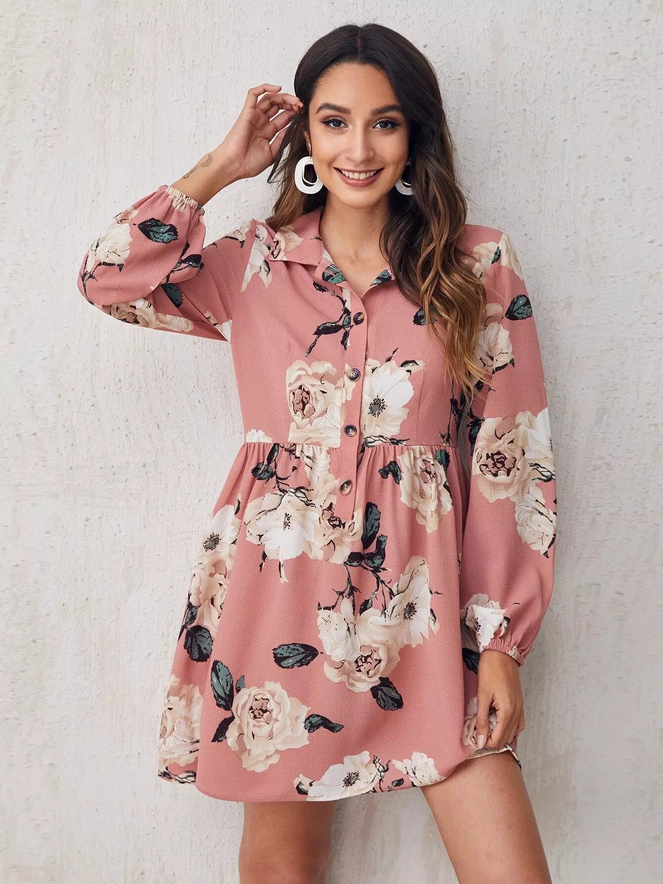 Floral Print Button Front Dress