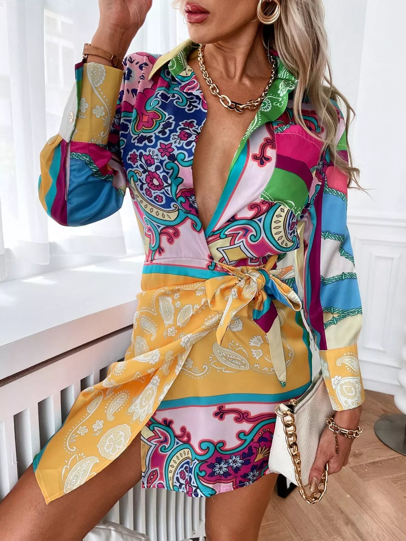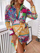Floral Print Knot Side Shirt Dress