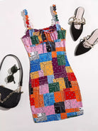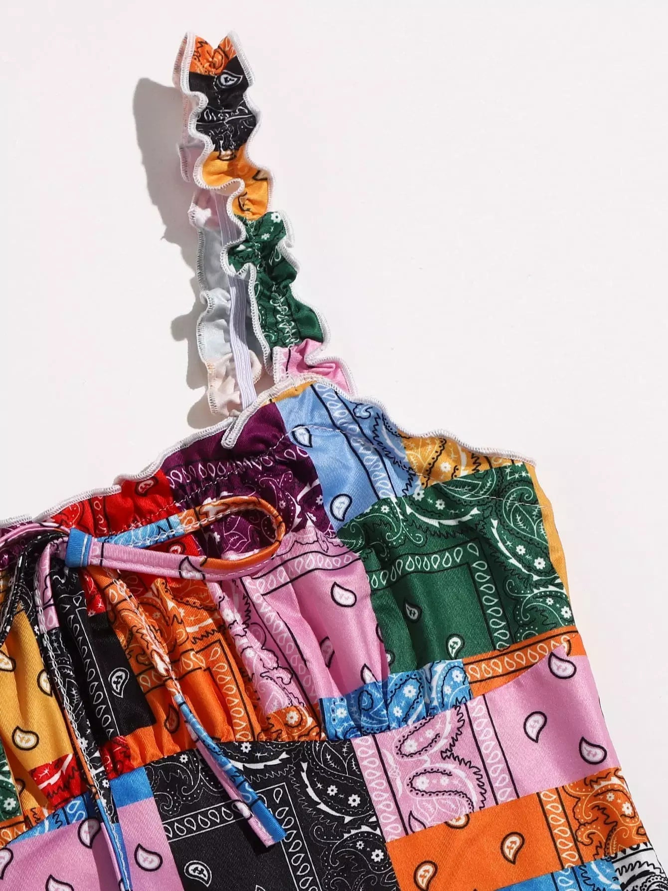Frill Strap Knotted Paisley Patchwork Dress