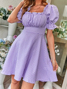 Gingham Ruched Bust Flounce Sleeve Dress