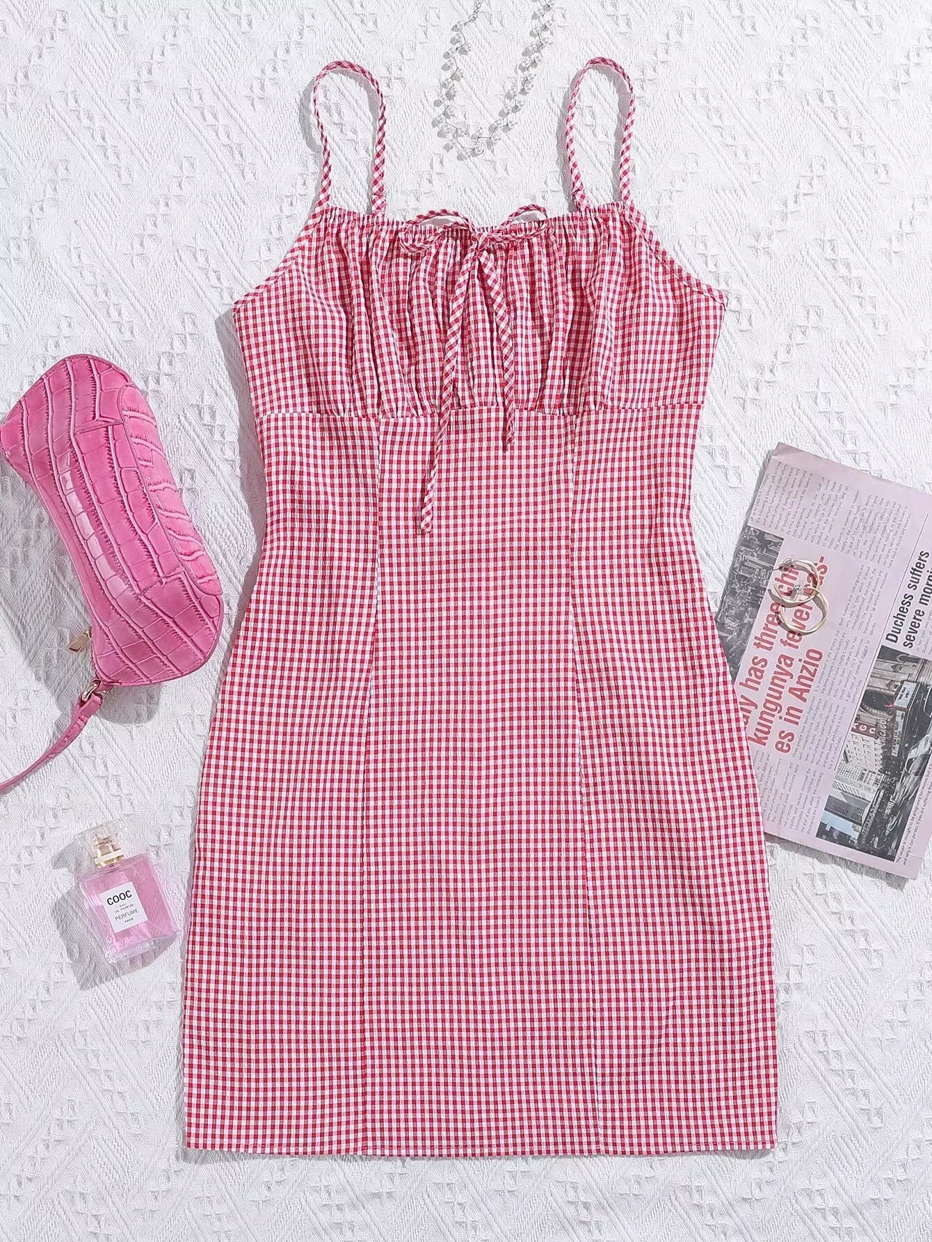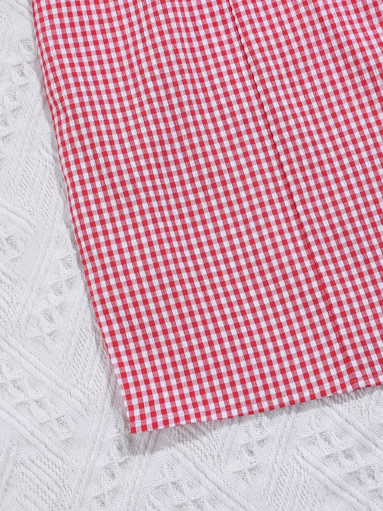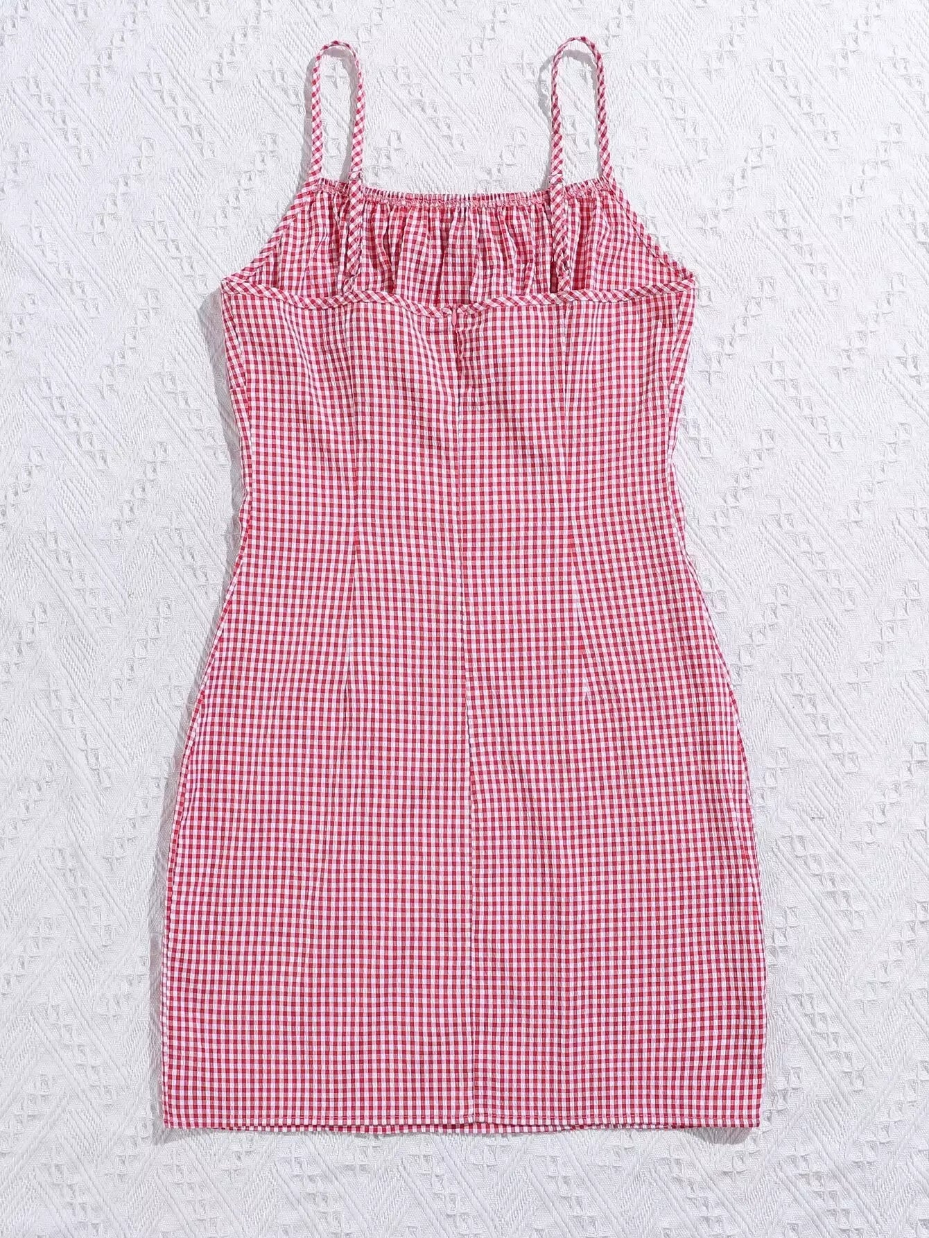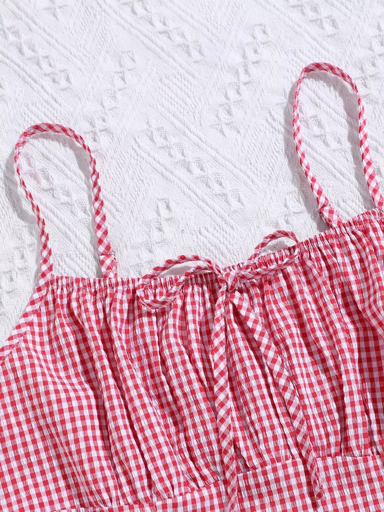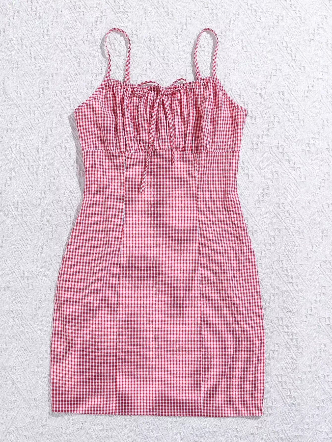 Gingham Ruched Bust Tie Front Dress