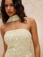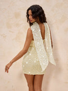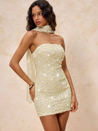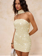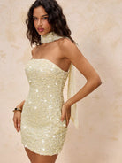 Glamine Apricot Sequin Patchwork Mini Dress For Women, Suitable For Party And Holidays