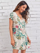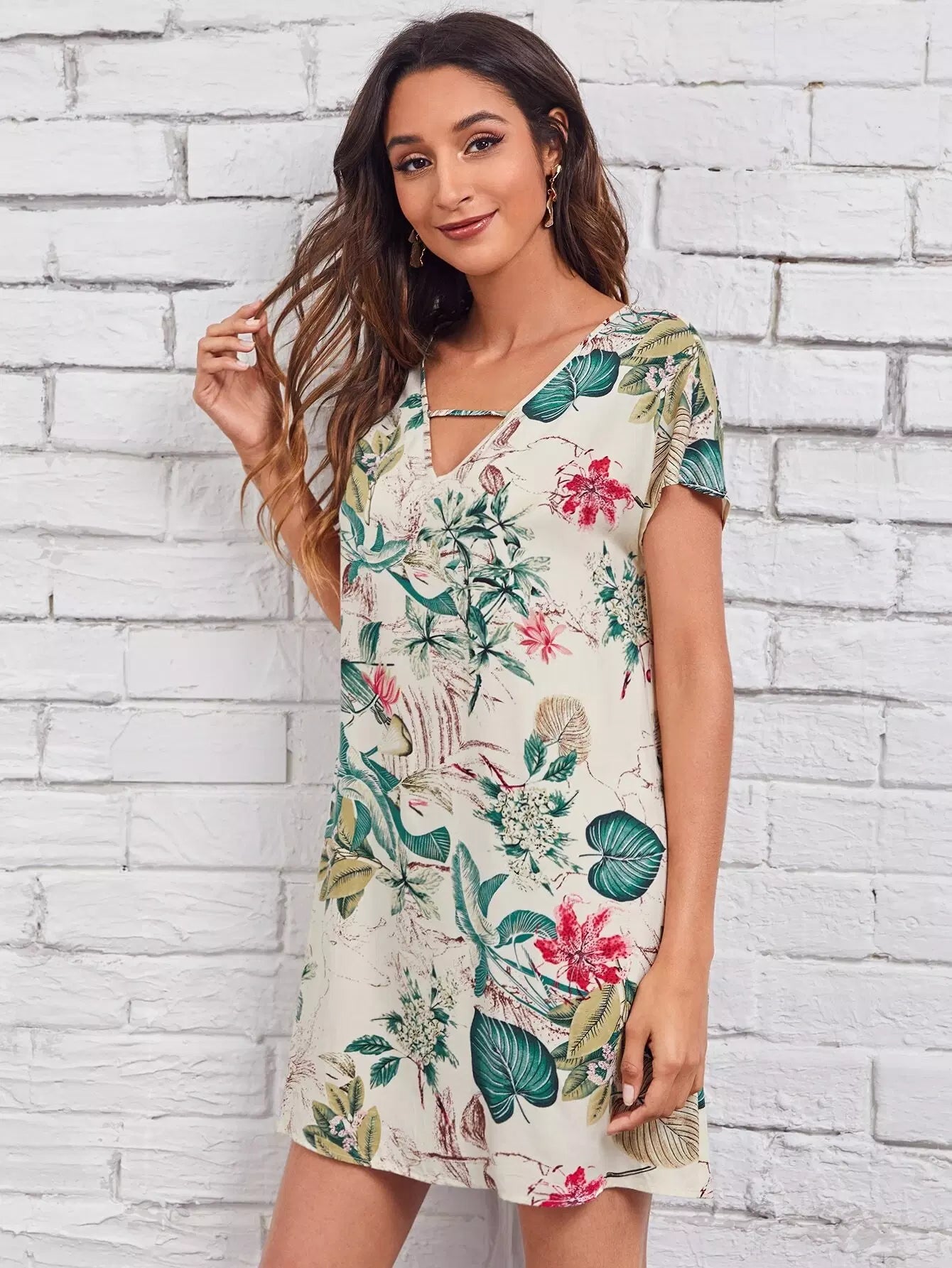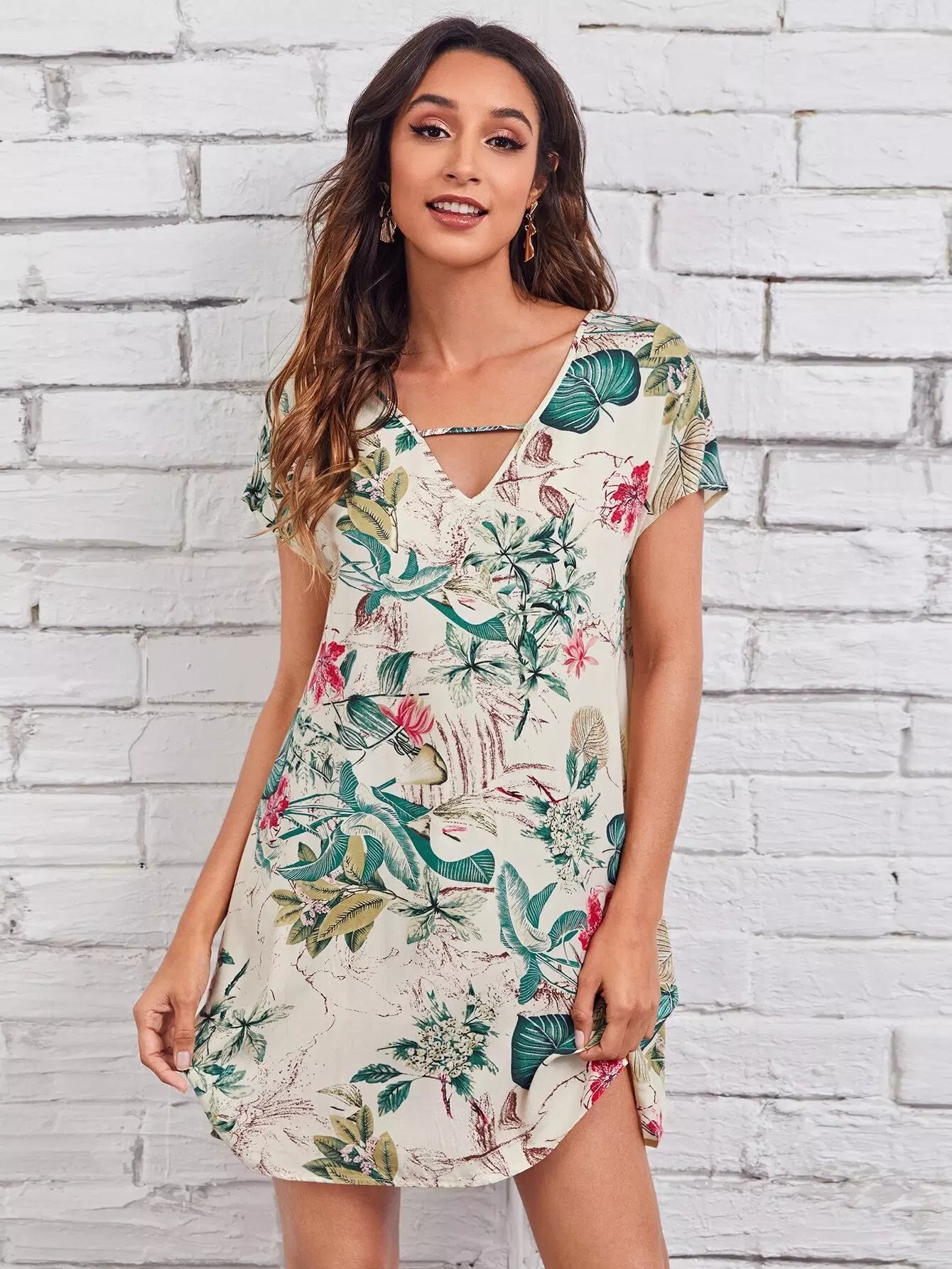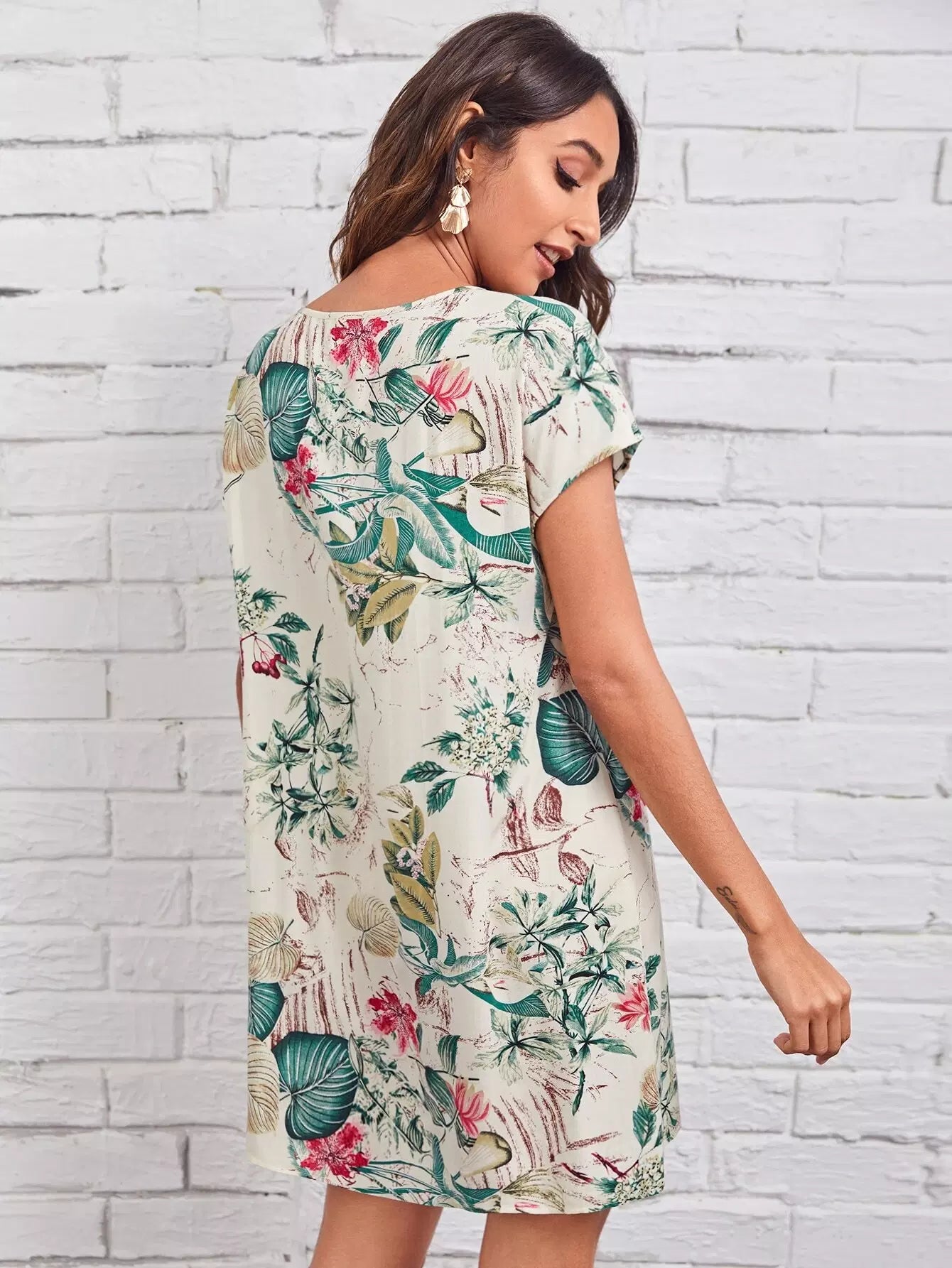 Keyhole Neck Tropical Print Dress