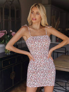 Knot Shoulder Allover Floral Print Bodycon Dress