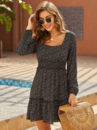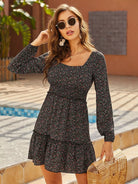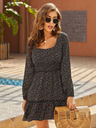 Lantern Sleeve Frill Trim Ditsy Floral Dress