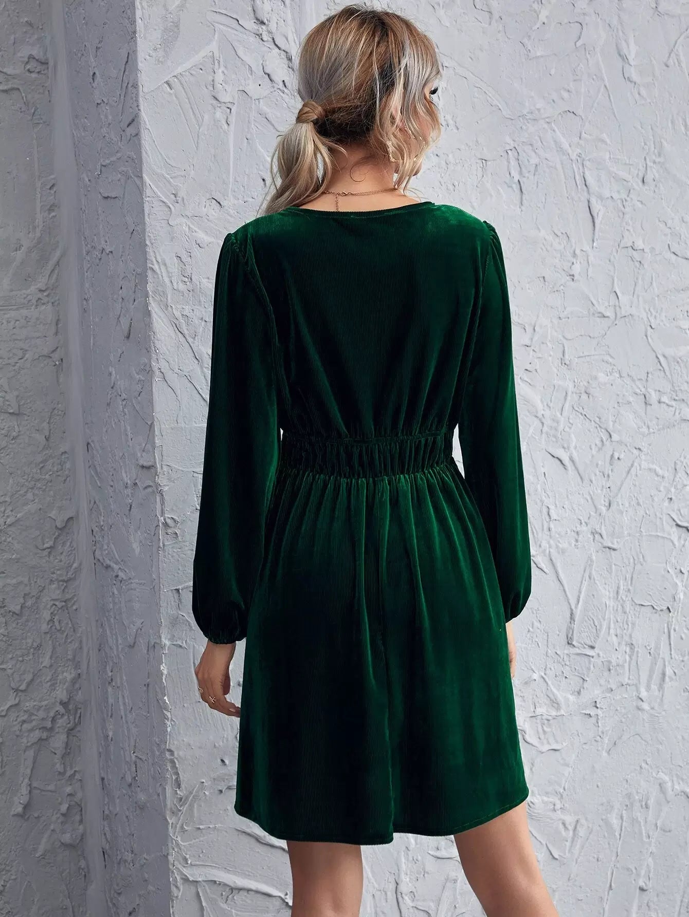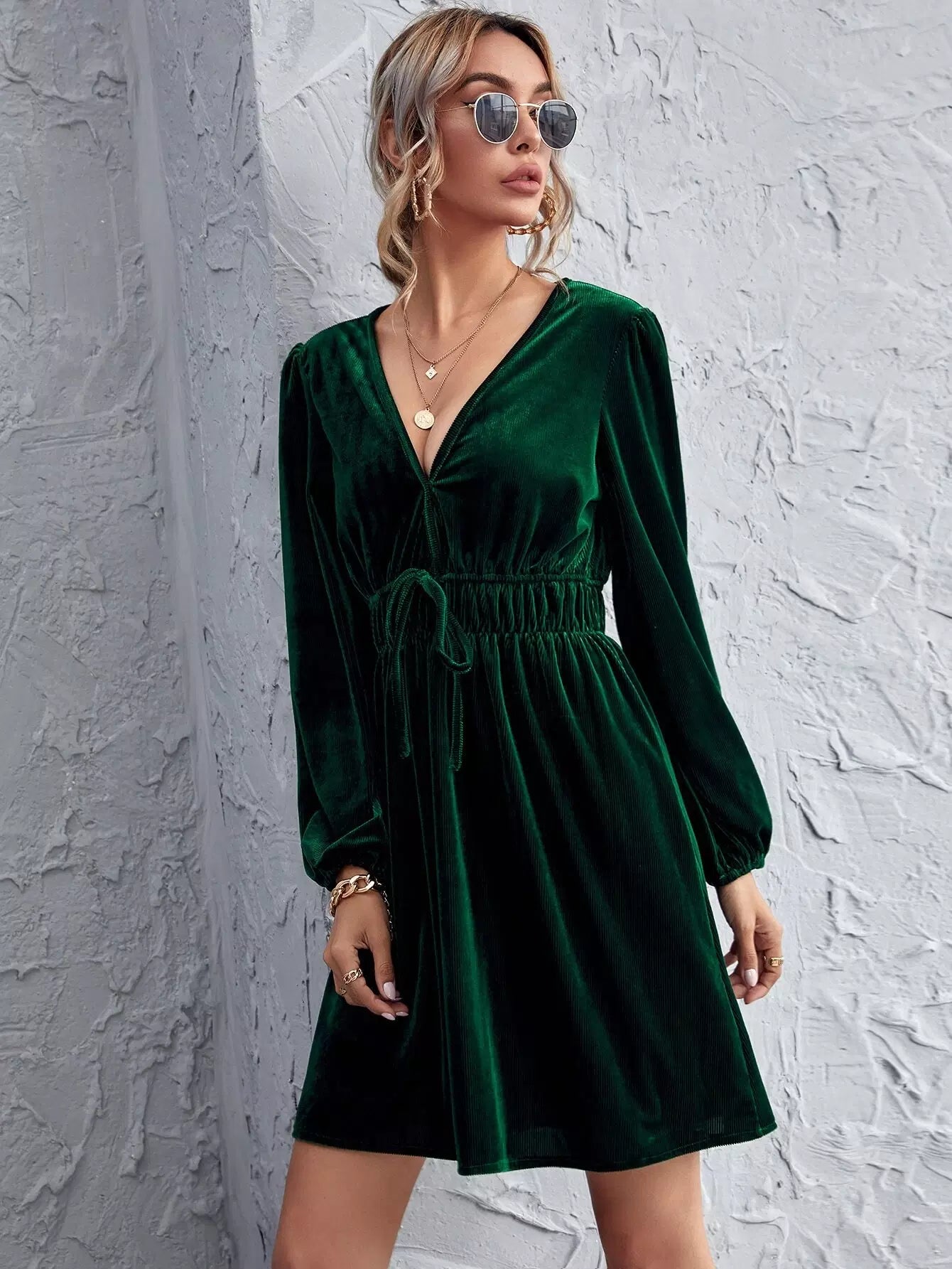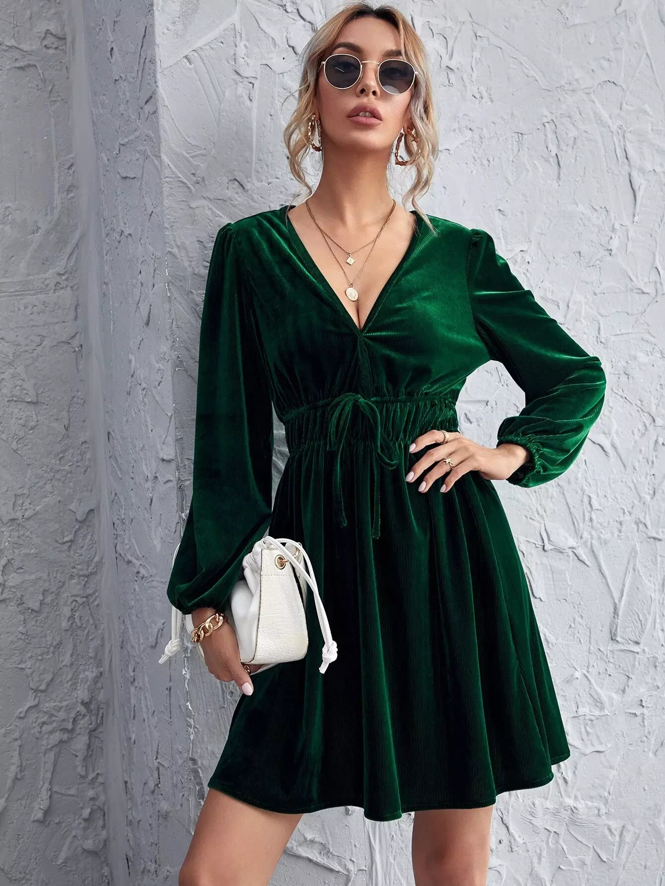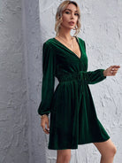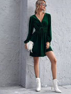 Lantern Sleeve Tie Waist Velvet Dress