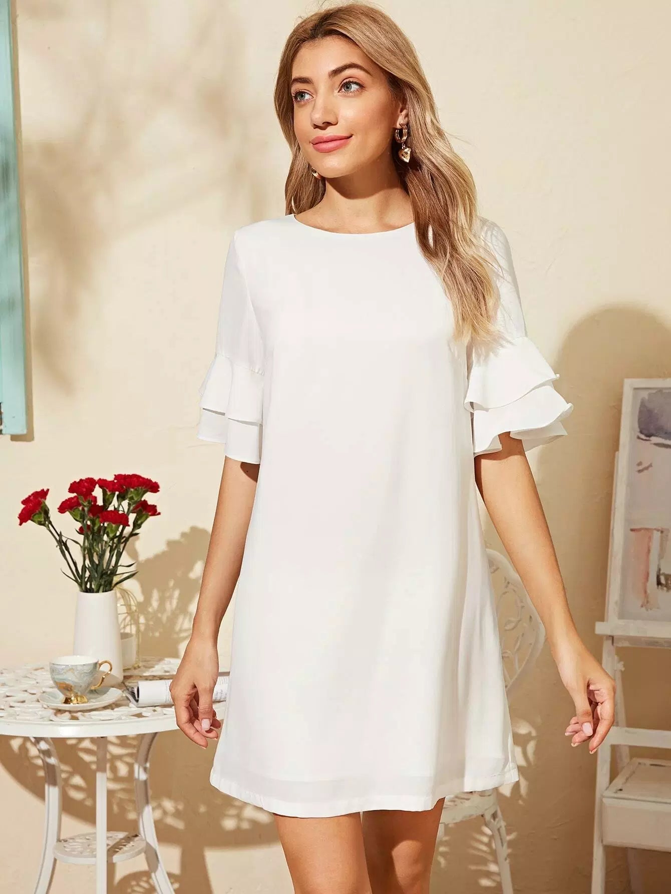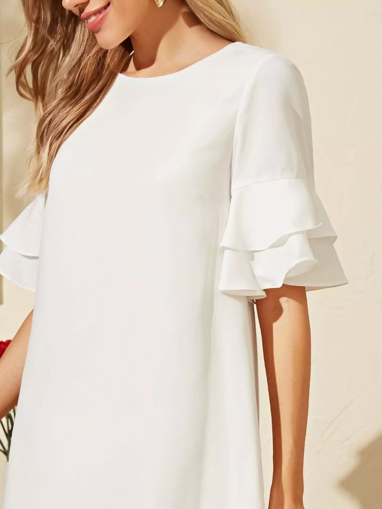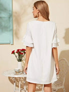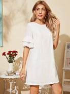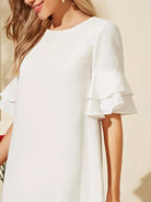 Layered Flounce Sleeve Solid Dress