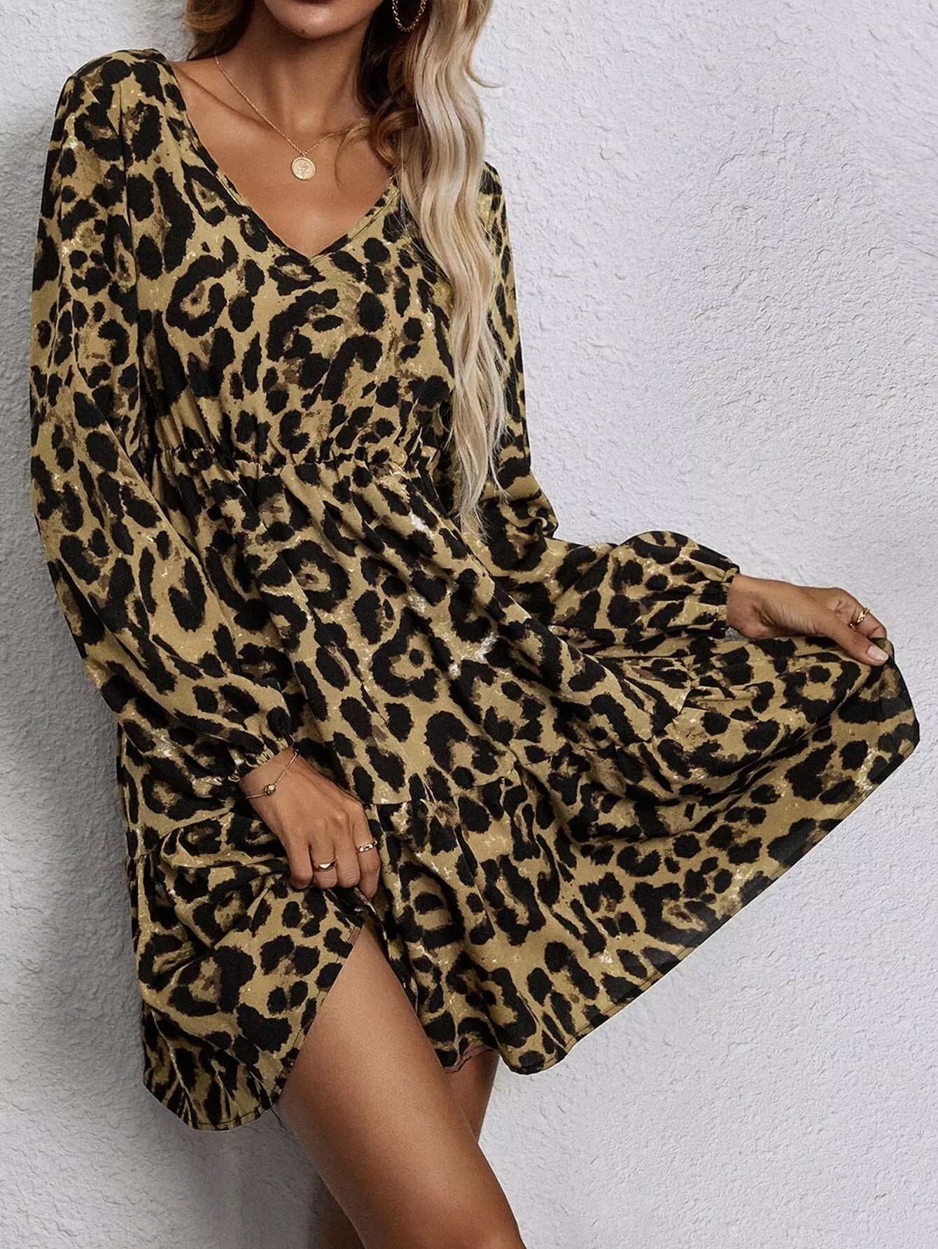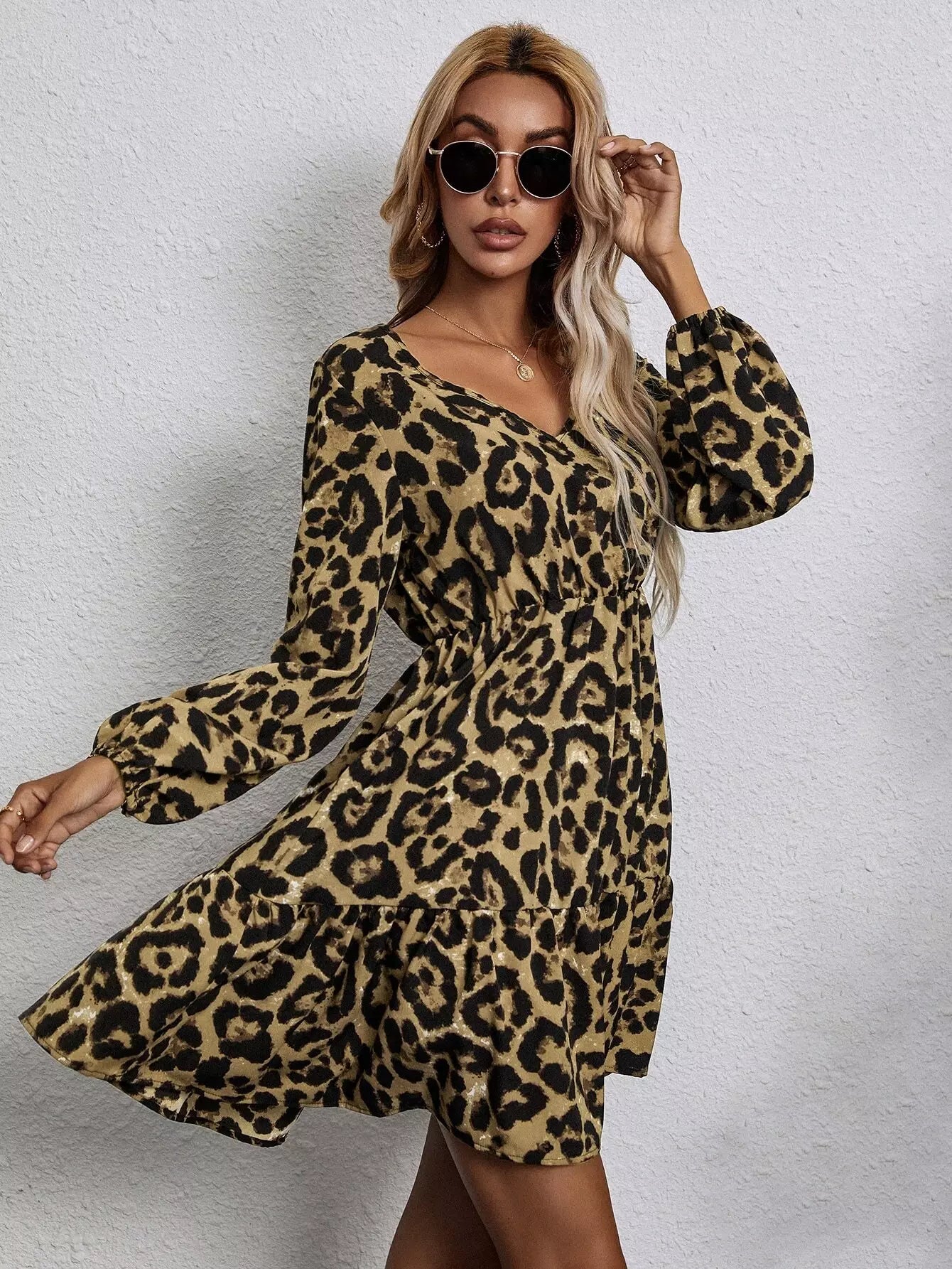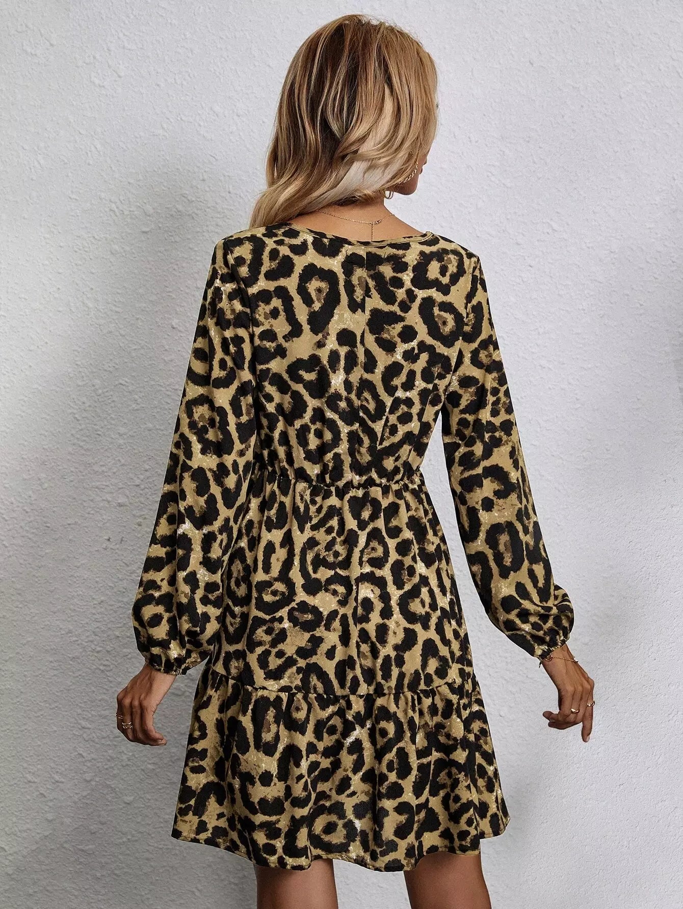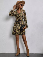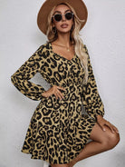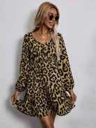 Leopard Lantern Sleeve Ruffle Hem Dress