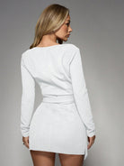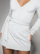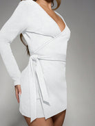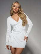 MISSGUIDED Long Sleeve Mini Wrap Dress With Ruched Side Detail, Bodycon Fit Party Club Evening Cocktail