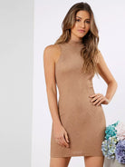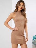 Mock Neck Textured Bodycon Dress