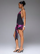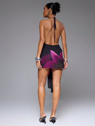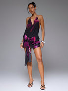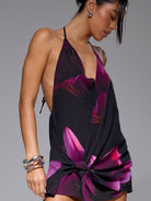 MUSERA Halterneck Plunge V Front Floral Print Drape Detail Loose Fit Mini Dress Spring Summer Birthday