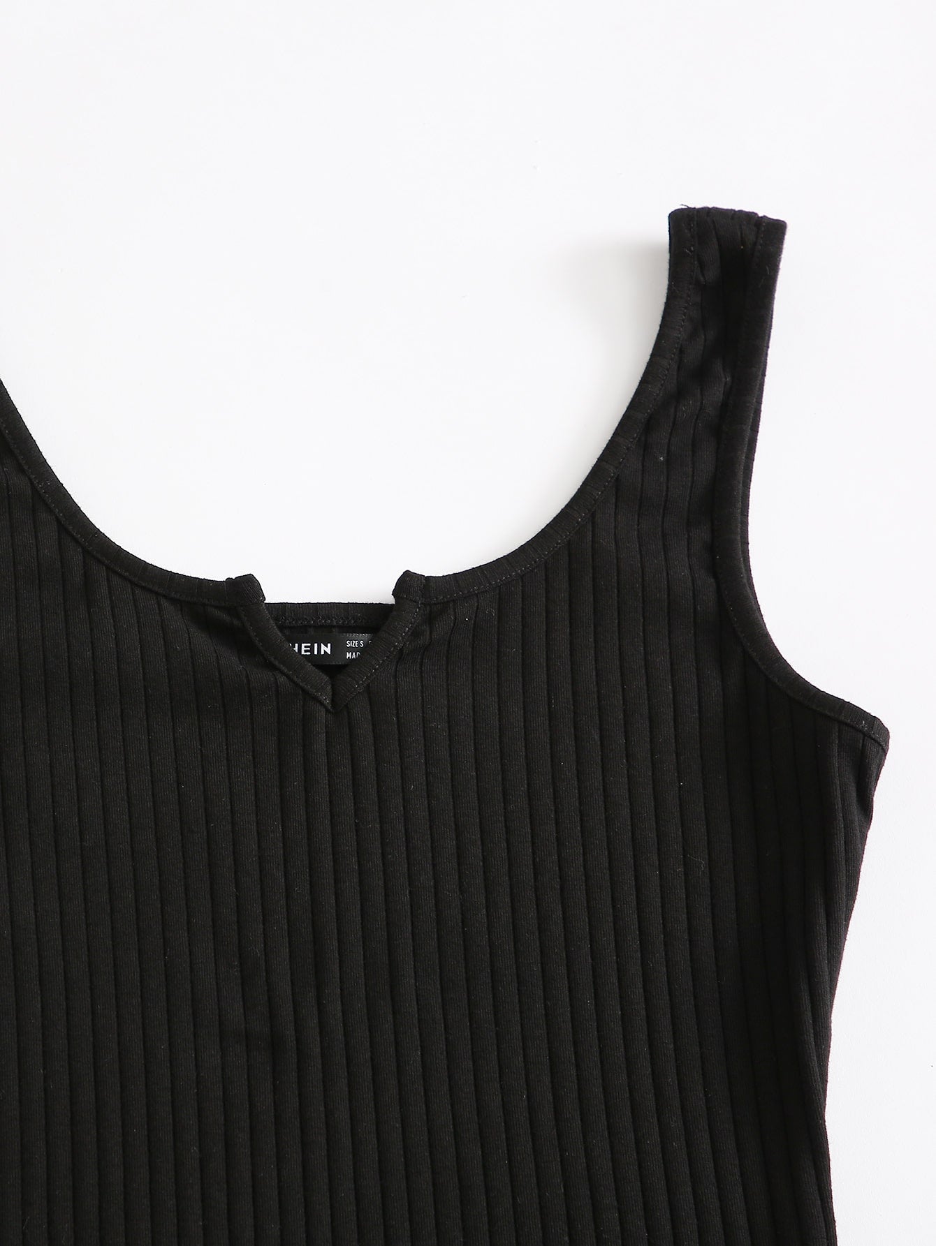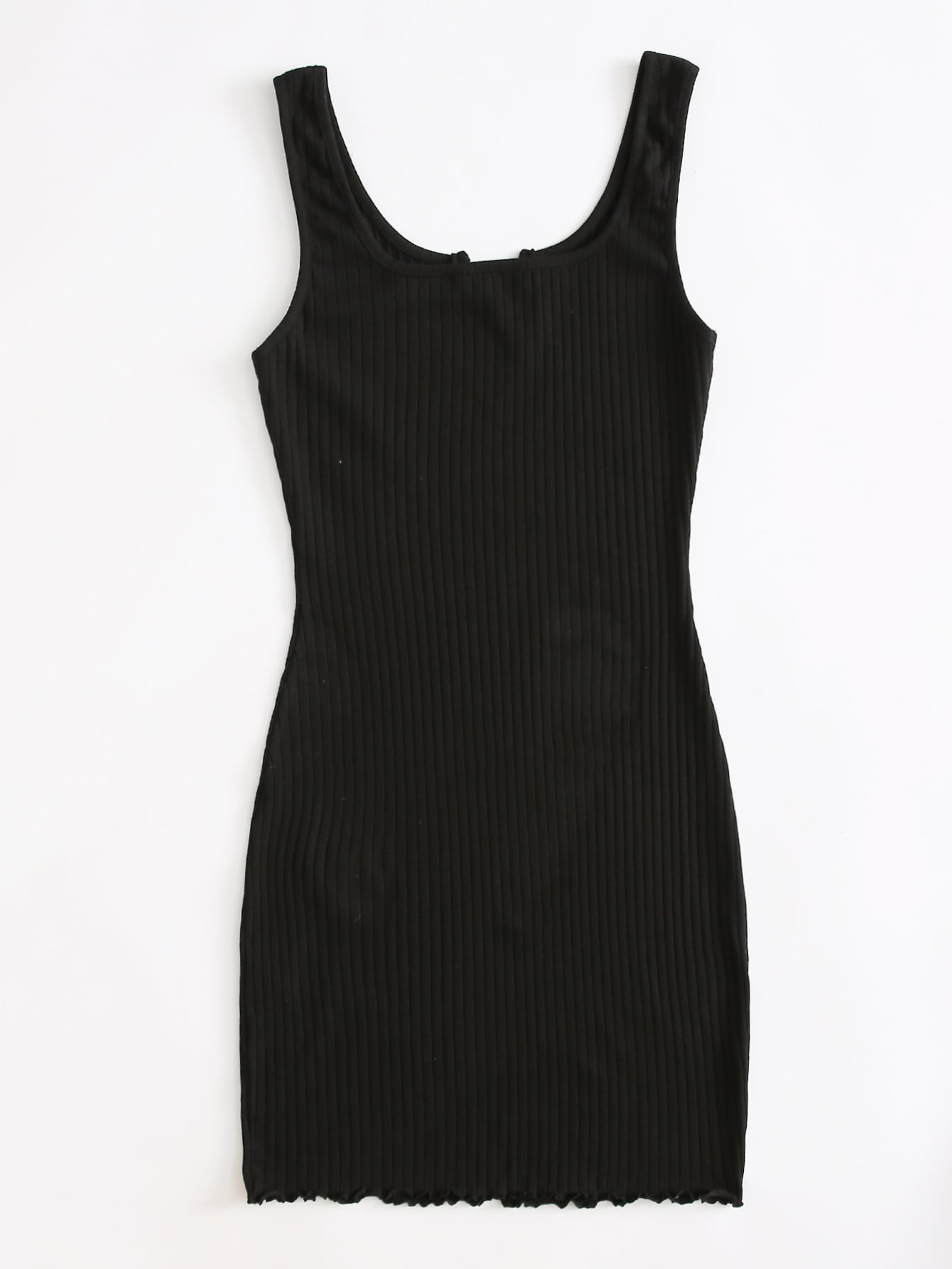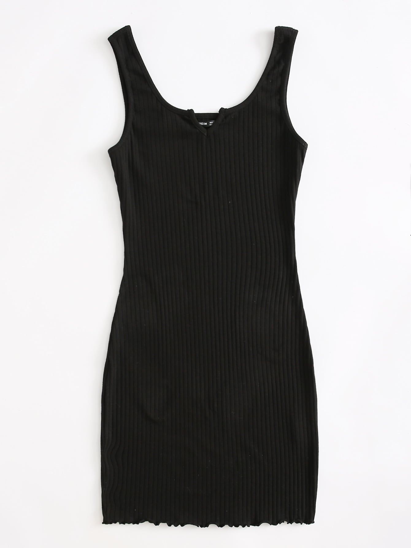 Notched Neck Rib-knit Lettuce Hem Bodycon Dress