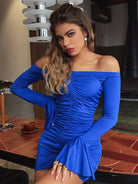 Off Shoulder Flounce Sleeve Ruched Detail Bodycon Dress