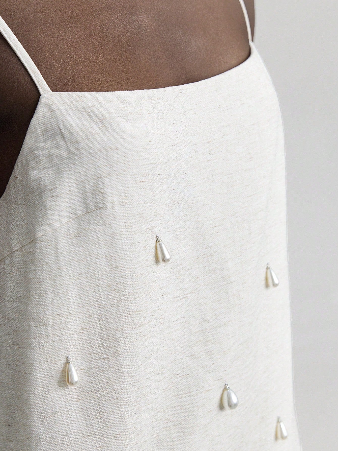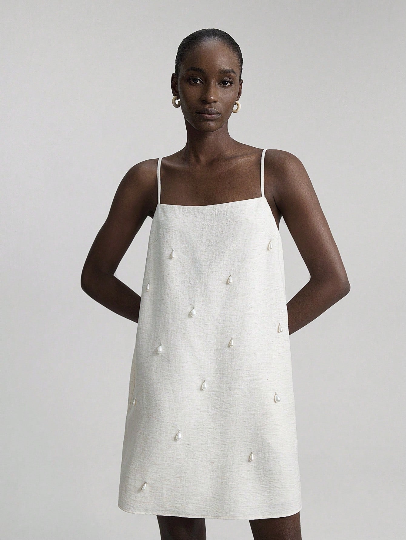 Ontre 2025 New Thin Strap Design A-Line Loose Fit Women's Dress, Comfortable Casual Style With Pearl