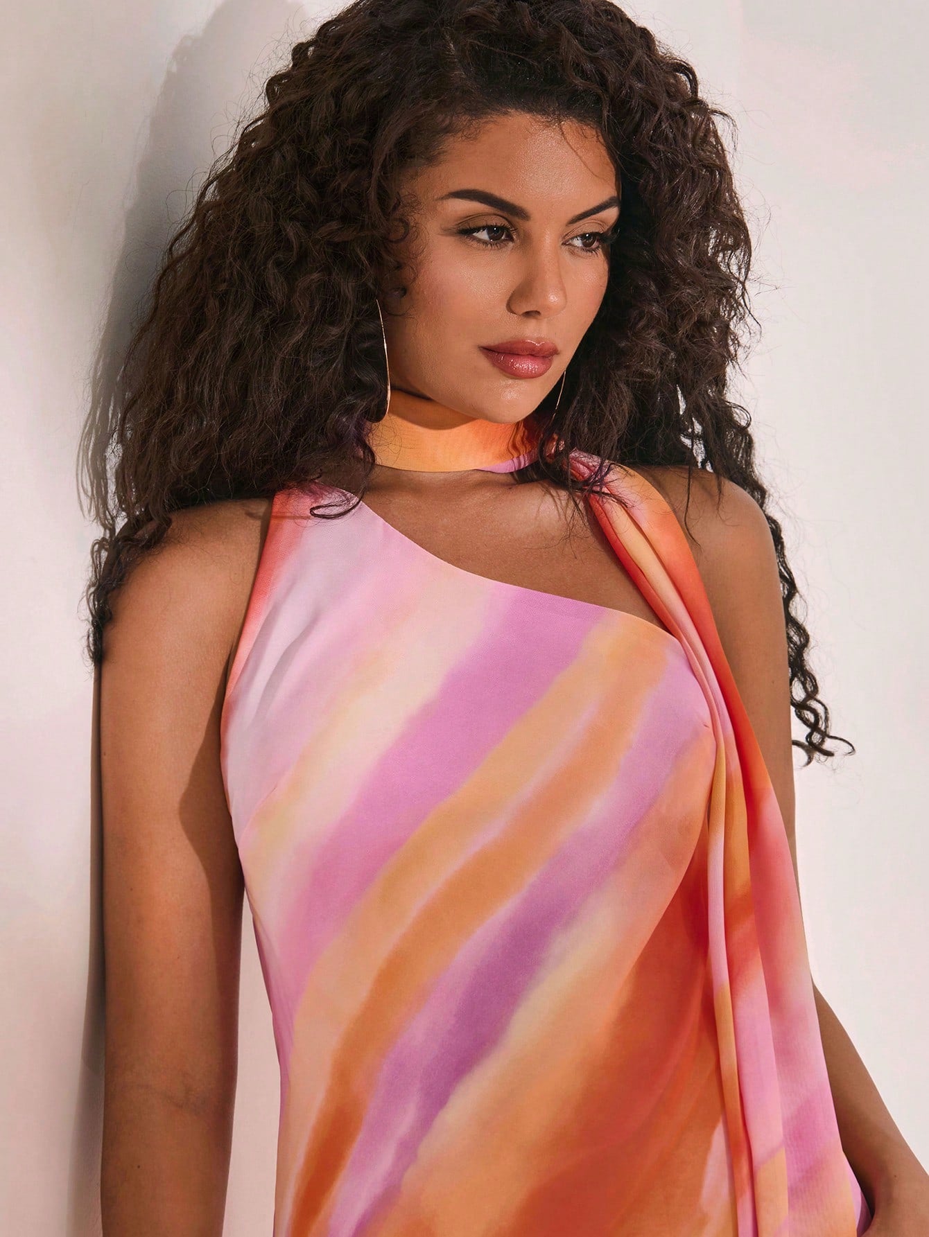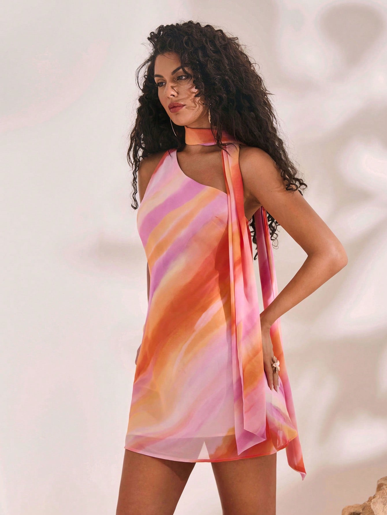 Opulessa Woven Print One Shoulder Bodycon Mini Beach Dress For Women