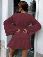 Women - Plunging Neck Bell Sleeve Tiered Ruffle Dress