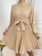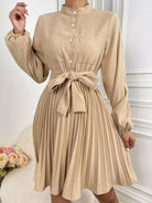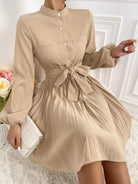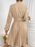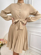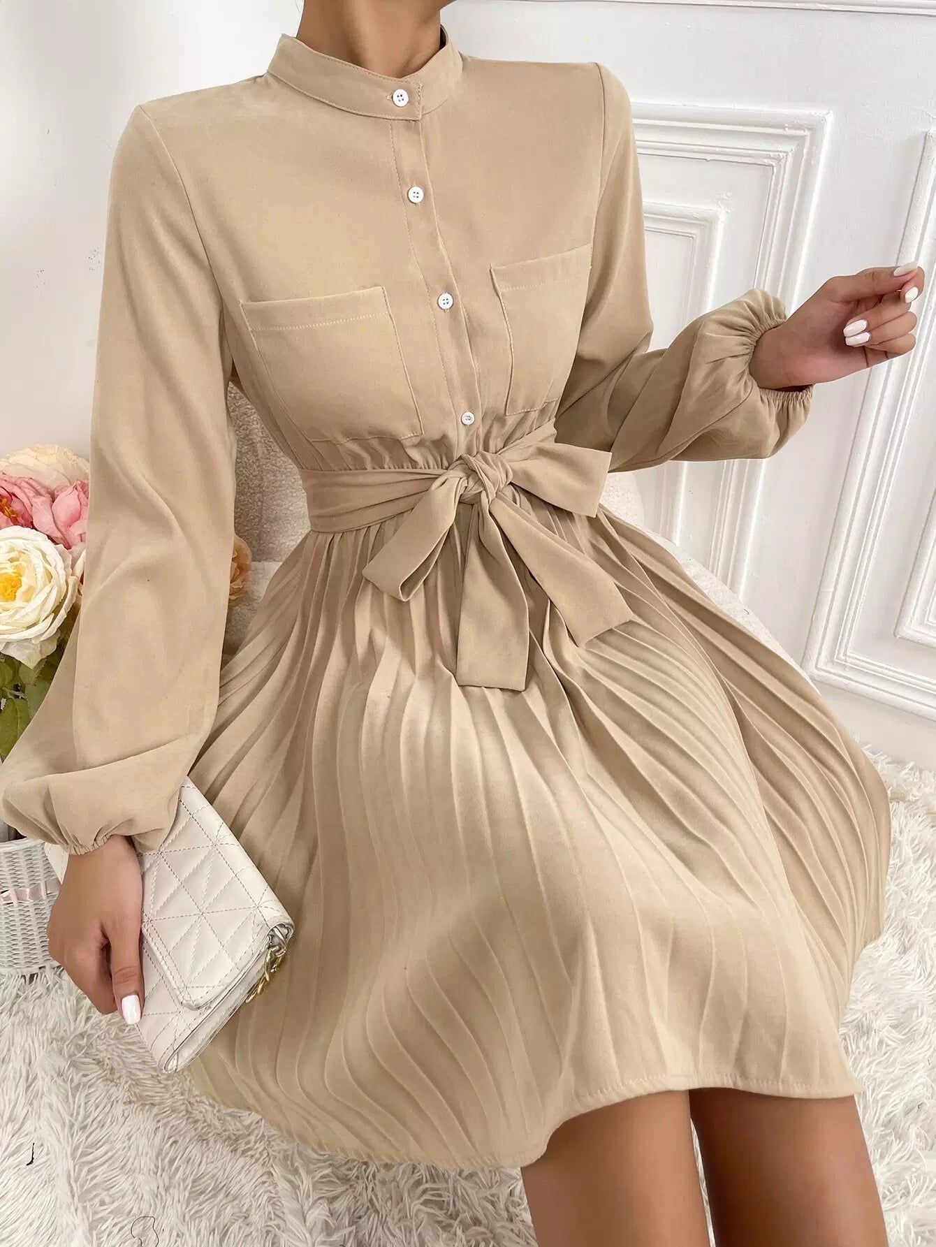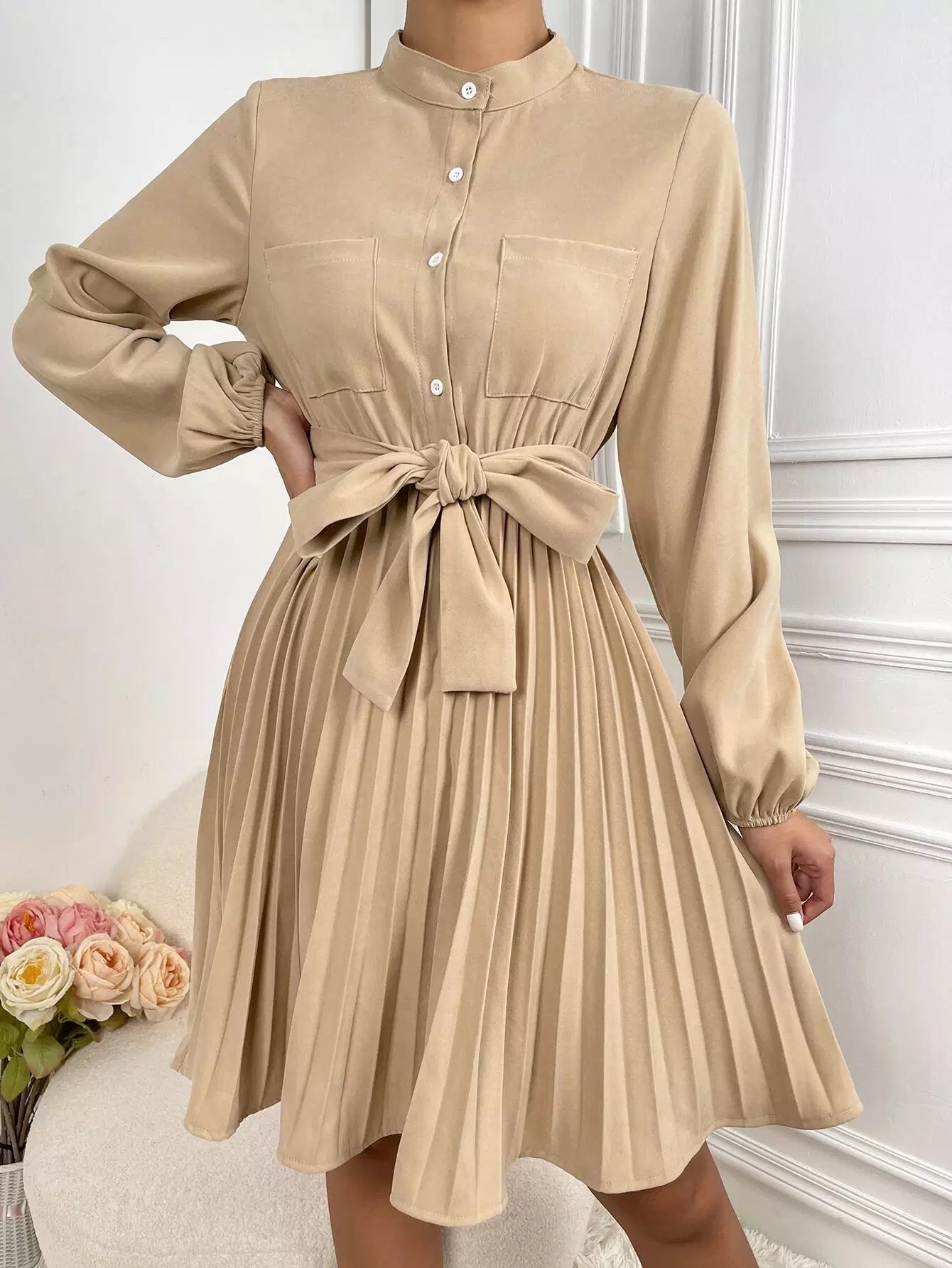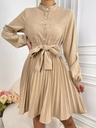 Pocket Front Lantern Sleeve Pleated Hem Dress Without Belt