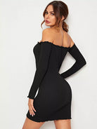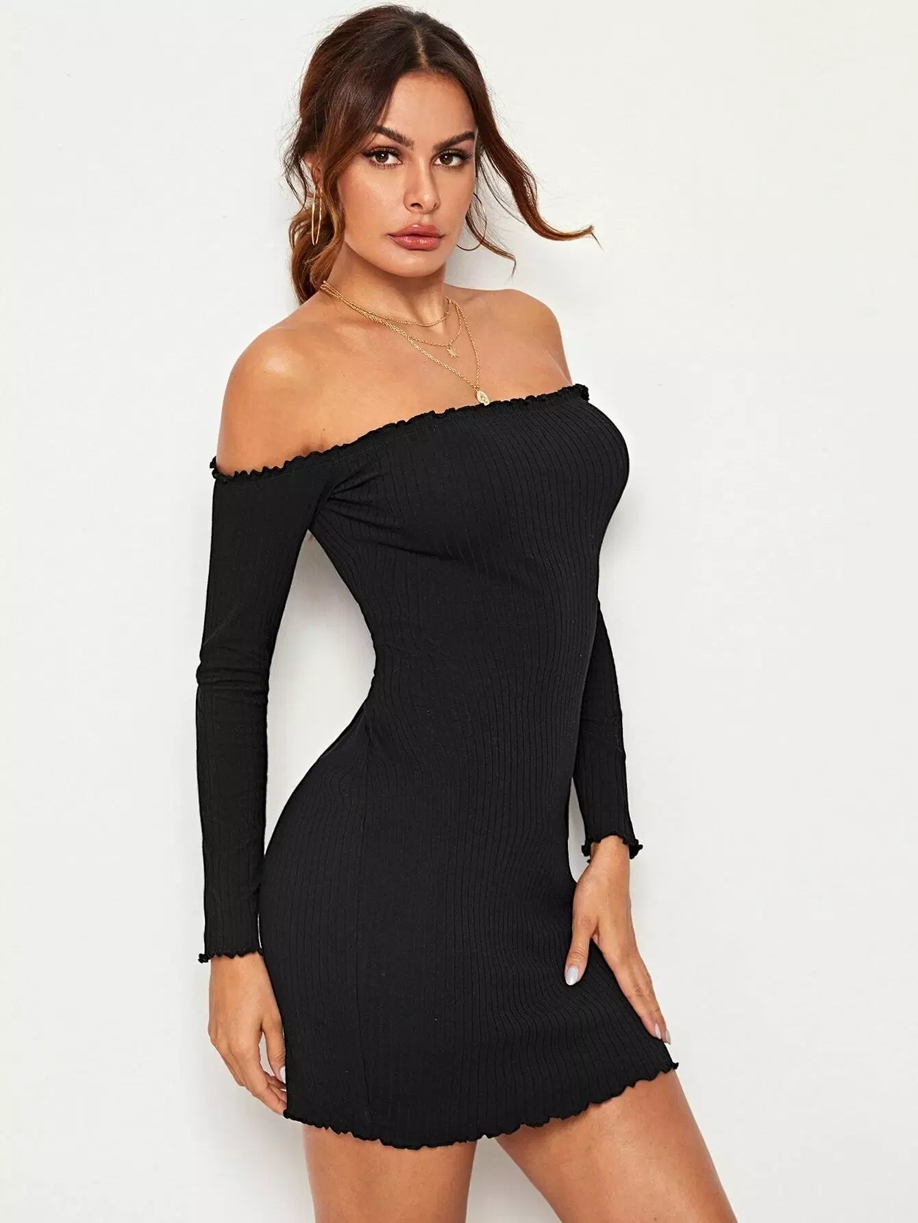 Ribbed Lettuce-Edge Bodycon Mini Dress