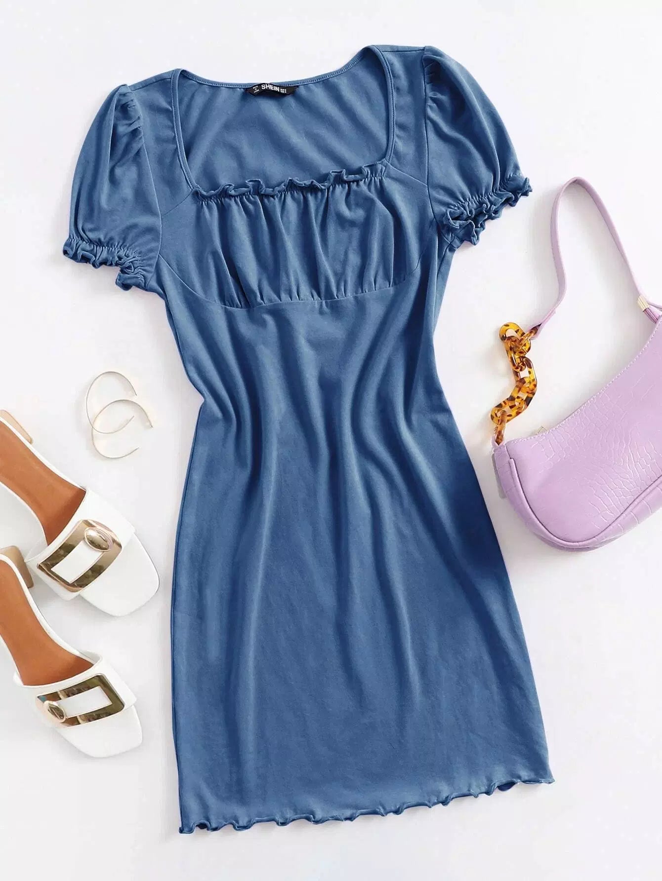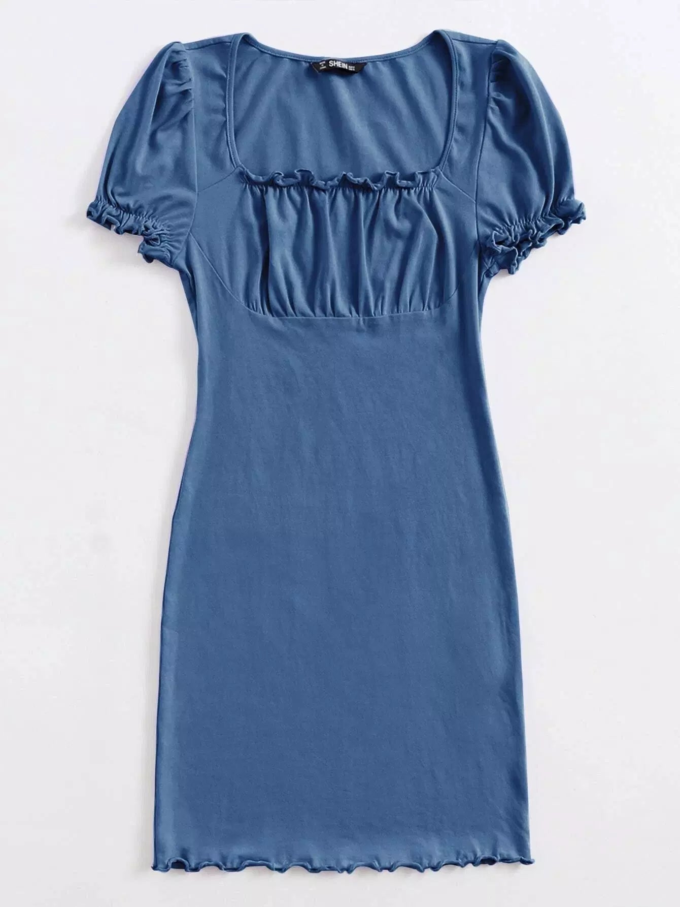 Ruched Bust Lettuce Edge Solid Dress