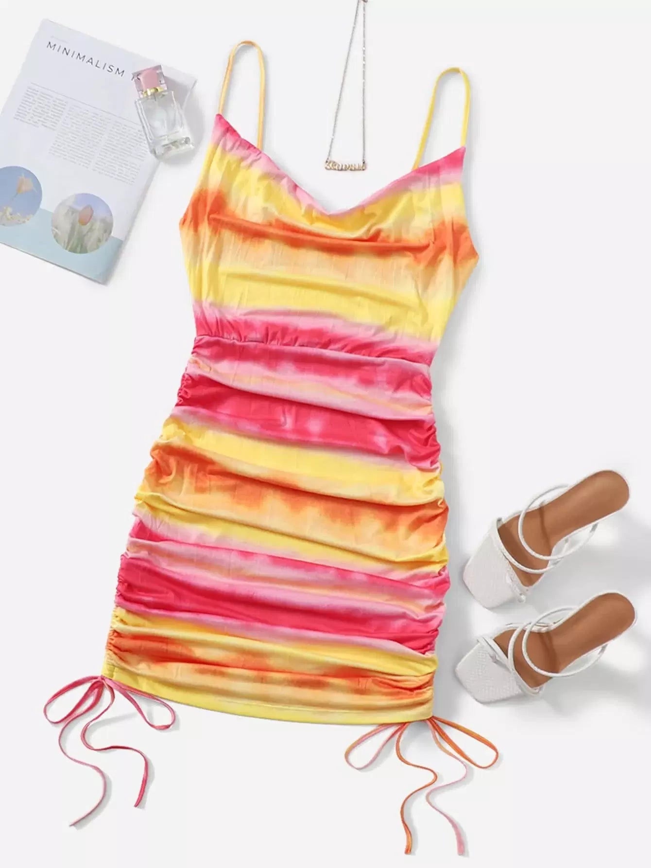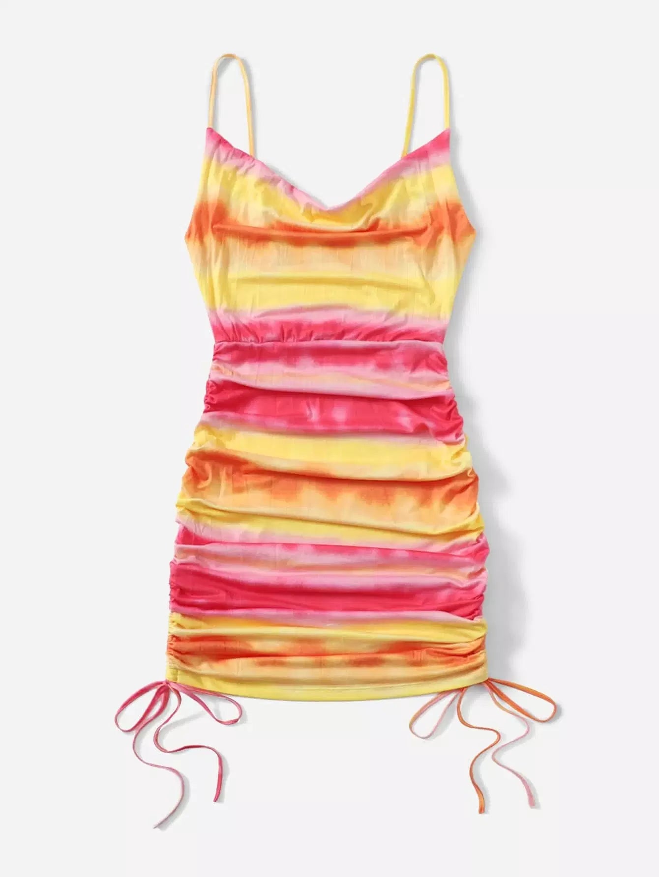 Ruched Drawstring Side Tie Dye Dress