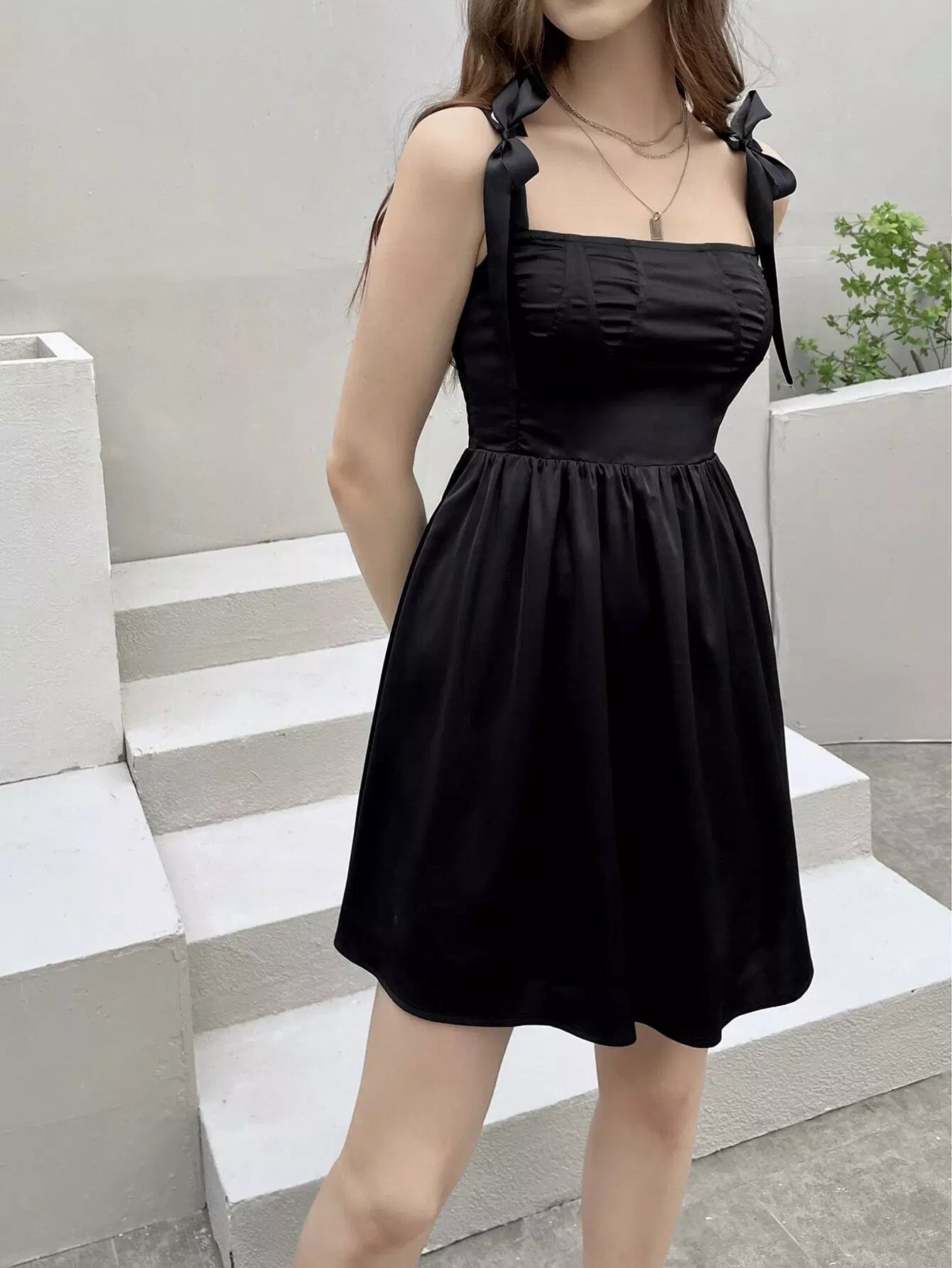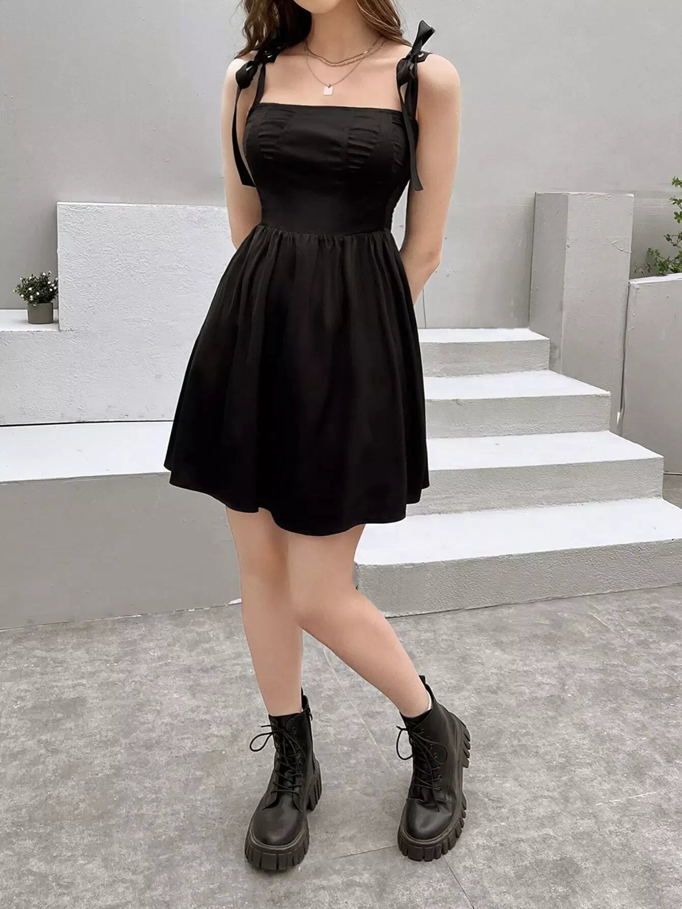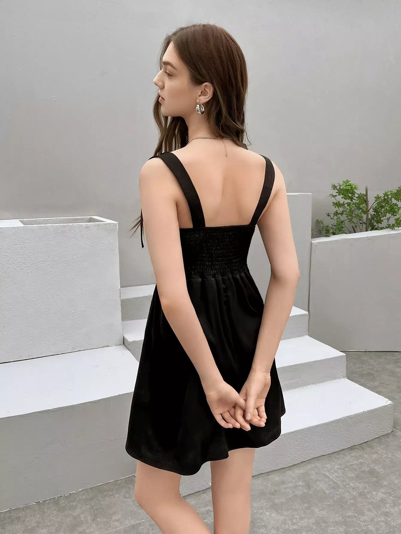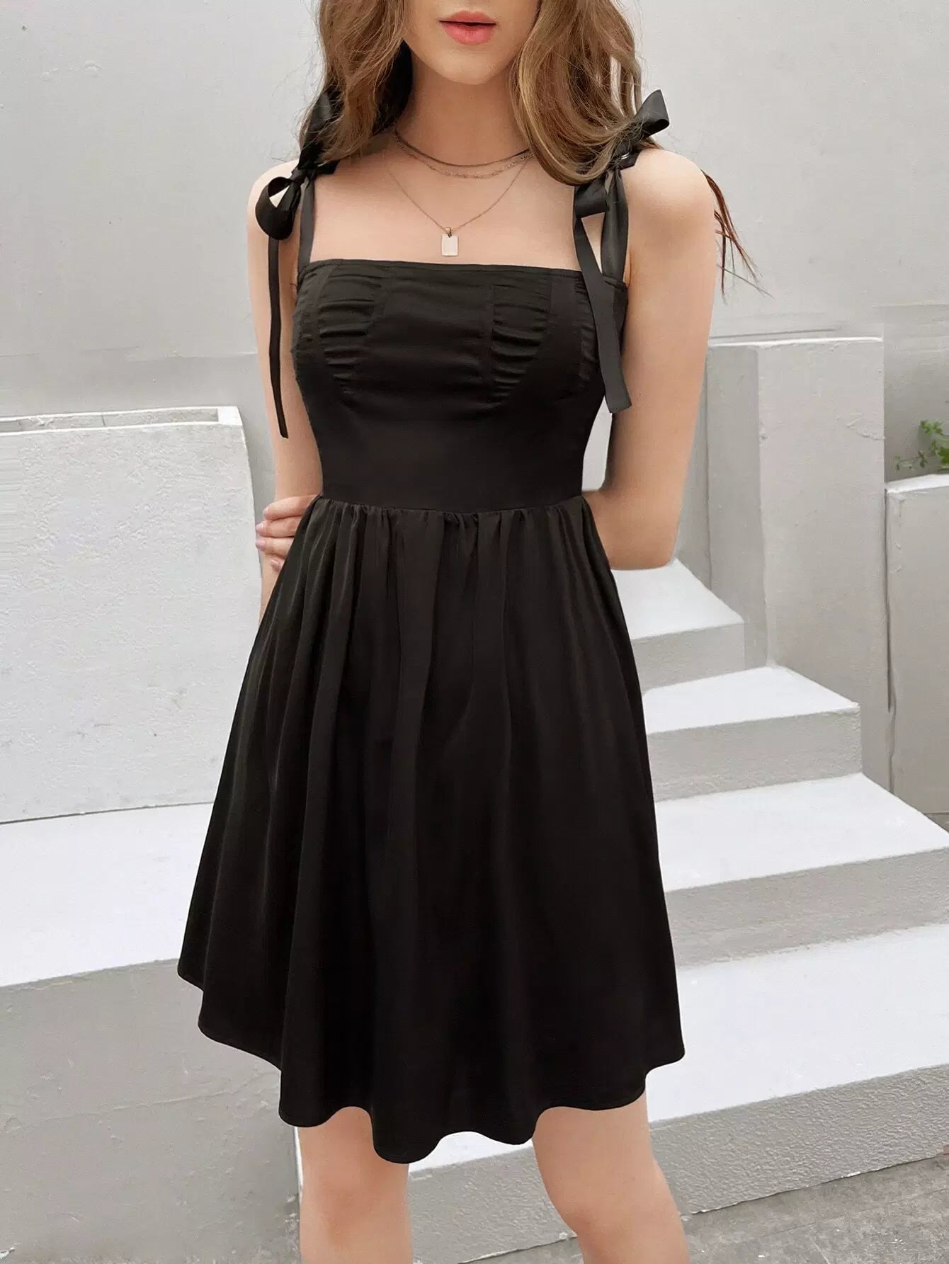 Ruched Tie Shoulder Shirred Back Cami Dress