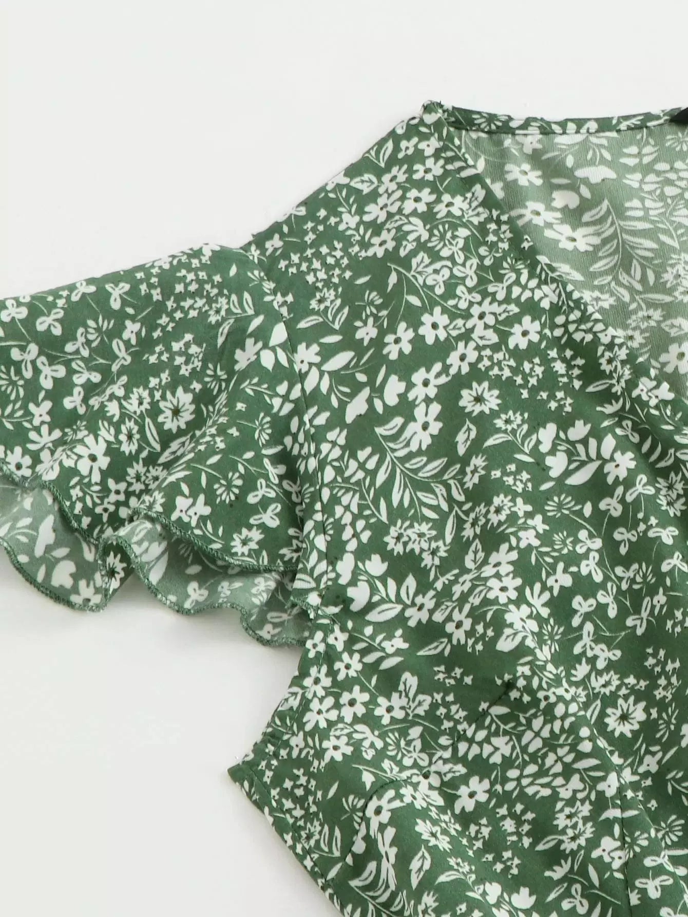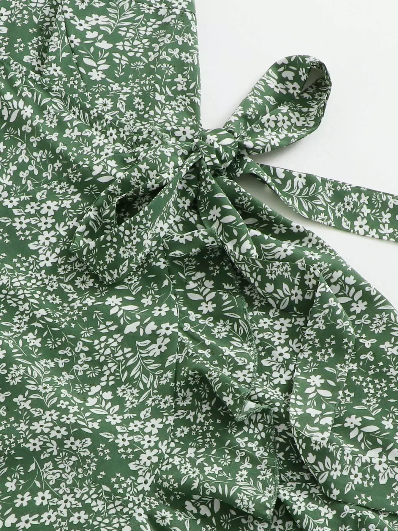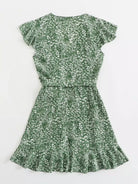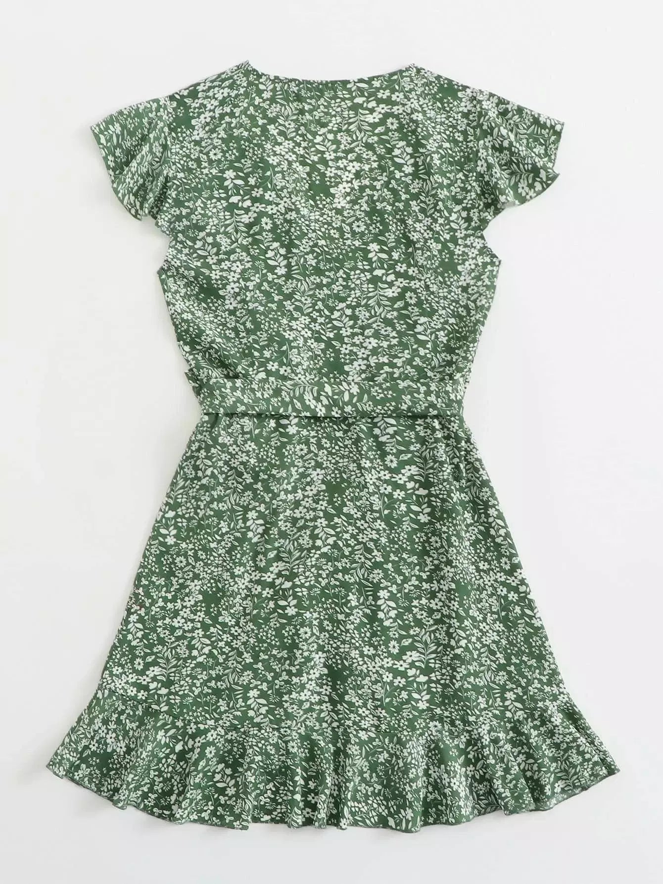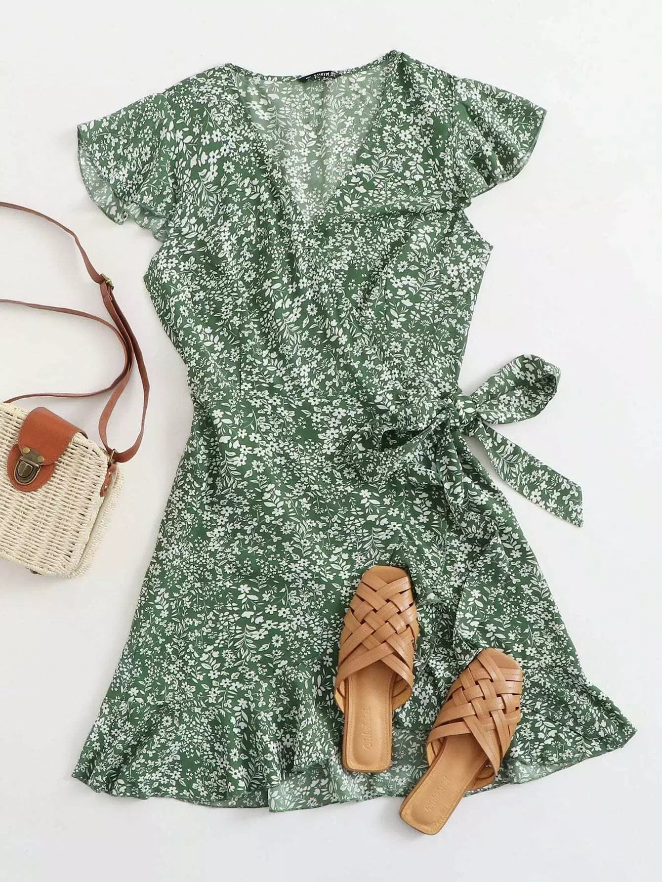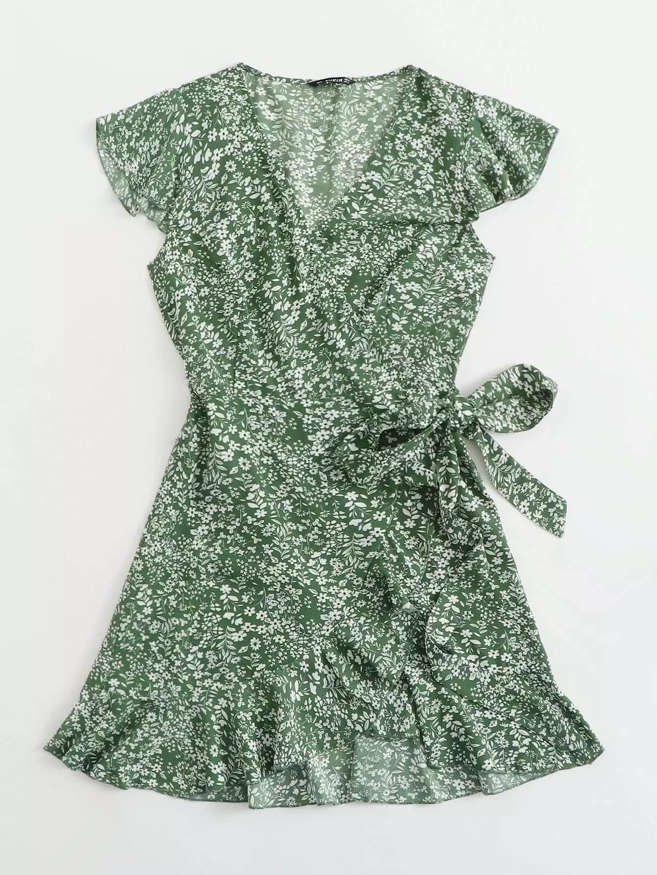 Ruffle Armhole Wrap Ditsy Floral Dress Without Belt