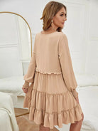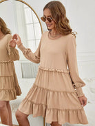 Shirred Cuff Frill Trim Layered Ruffle Hem Dress