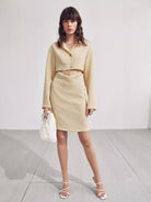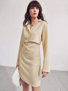 Single Breasted Cutout Waist Shirt Dress