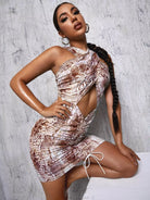 Snakeskin Print Crisscross Cutout Ruched Dress