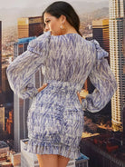 Snakeskin Print Plunging Neck Ruched Detail Dress