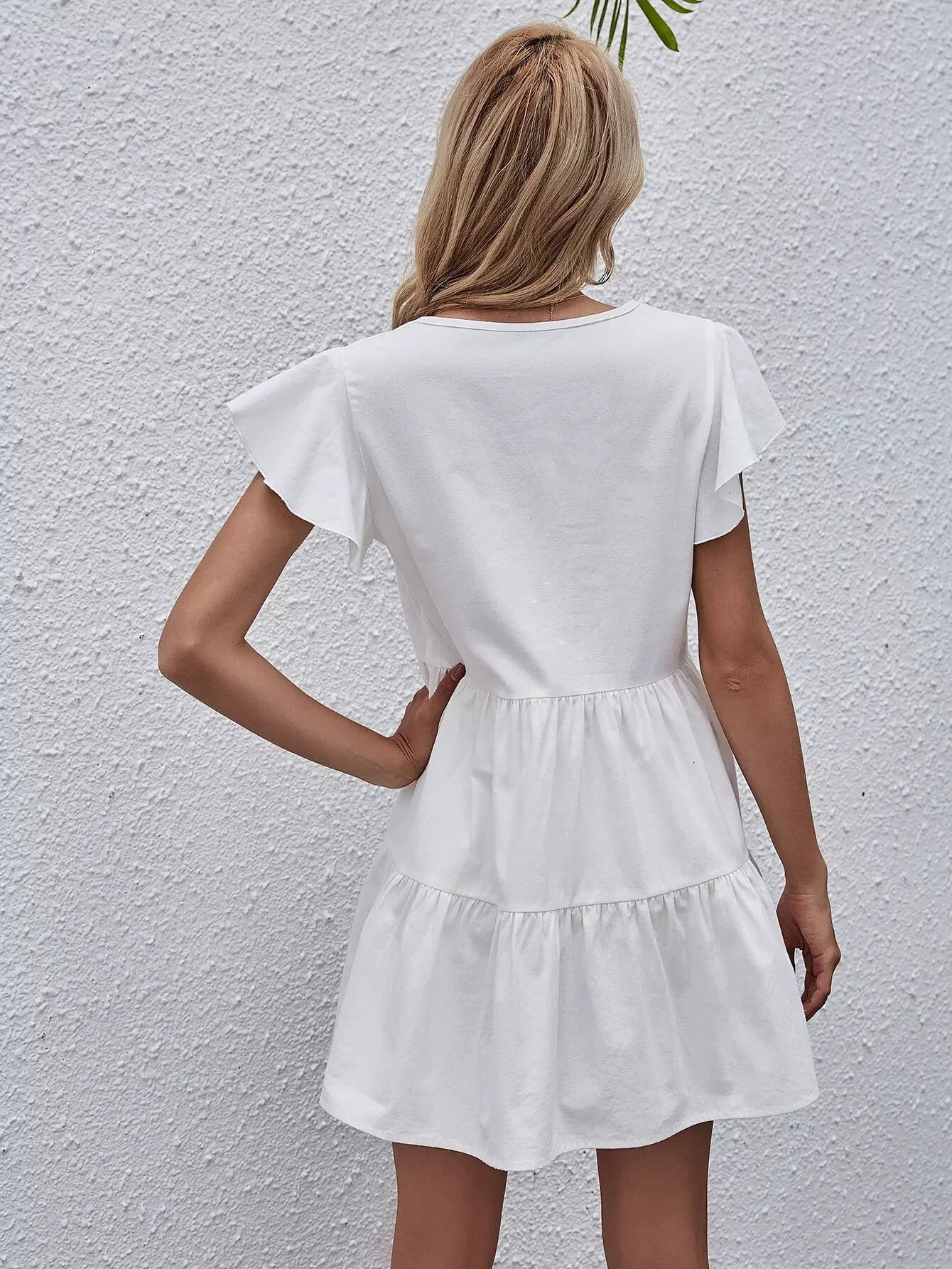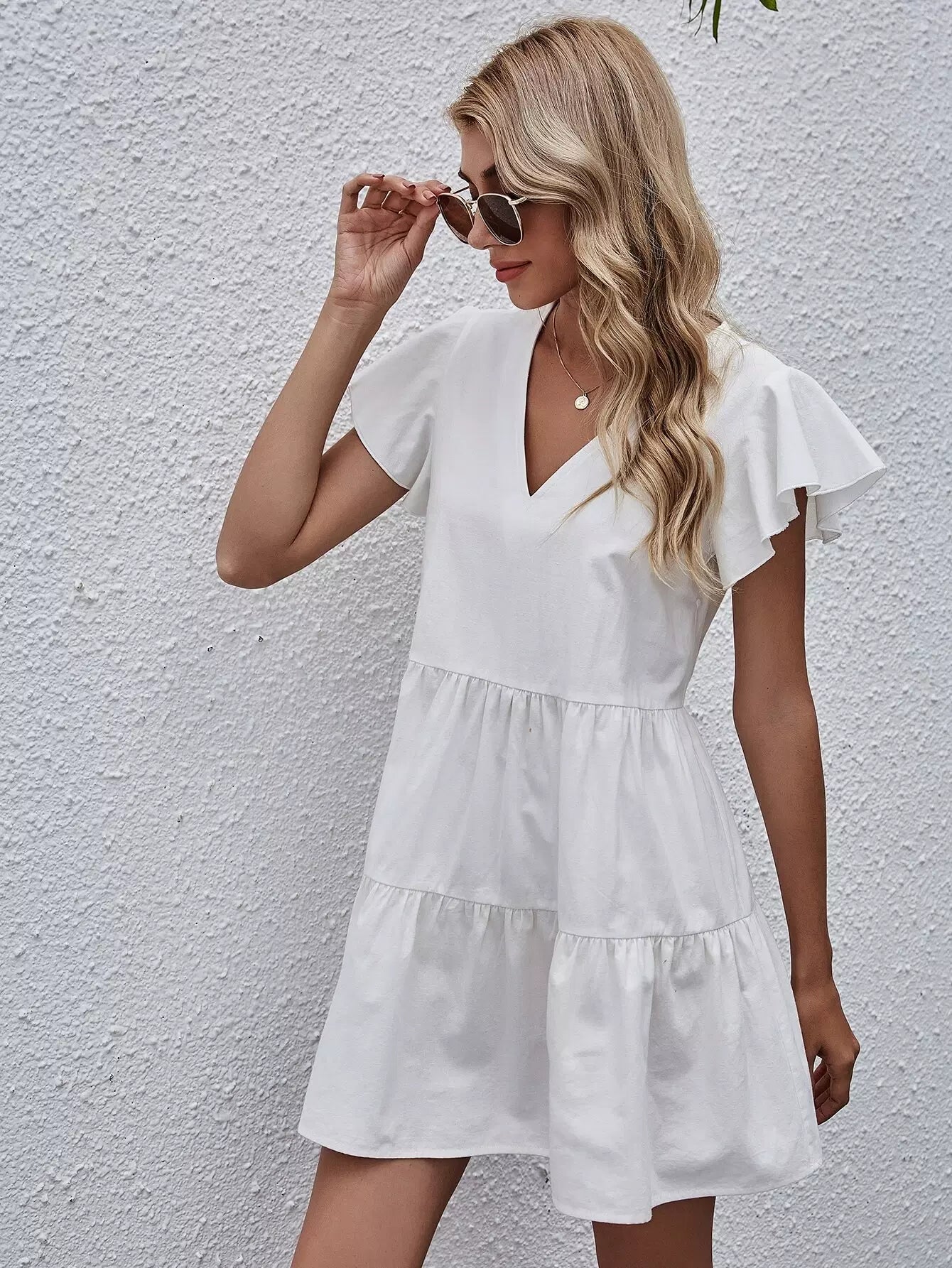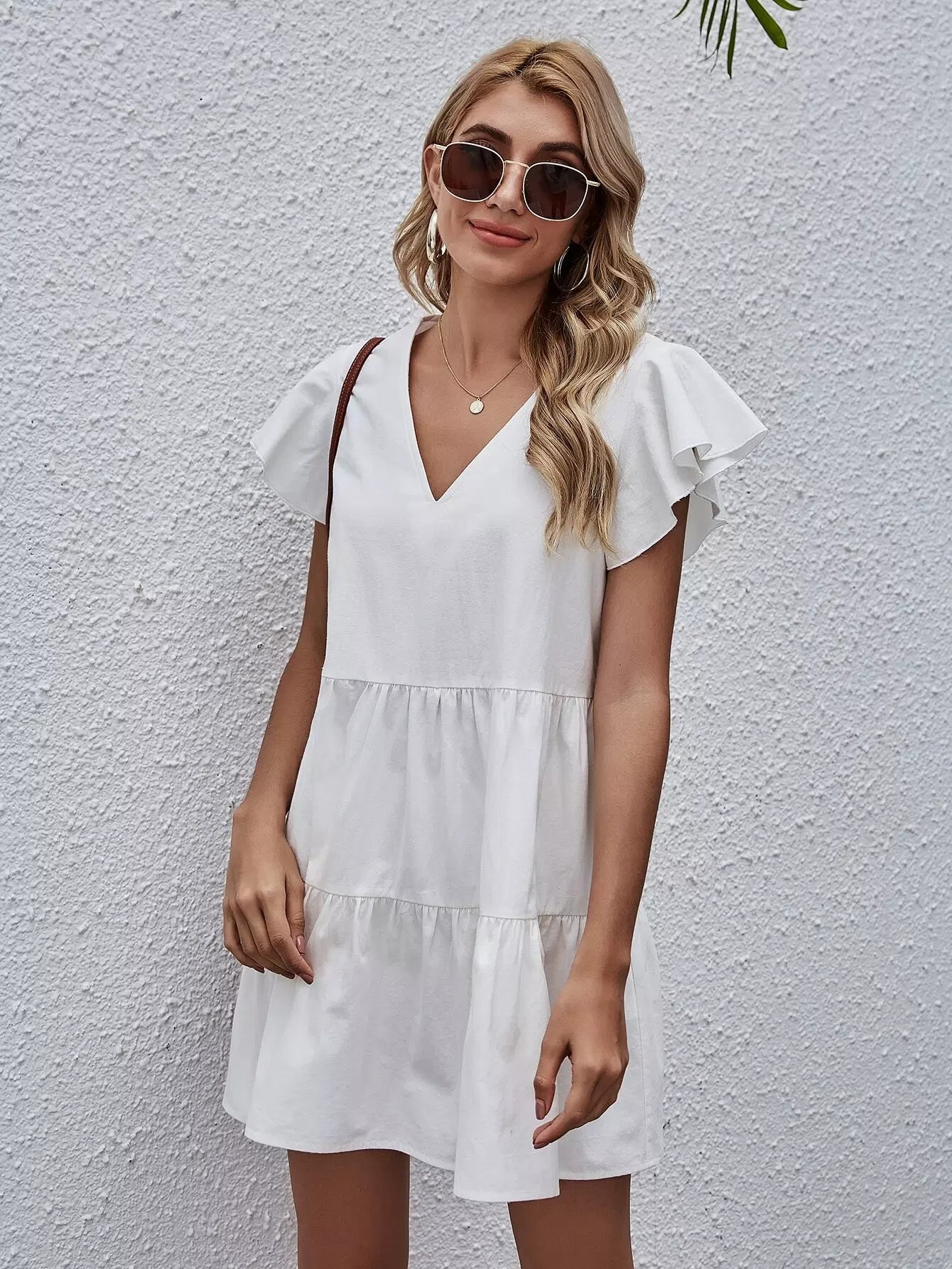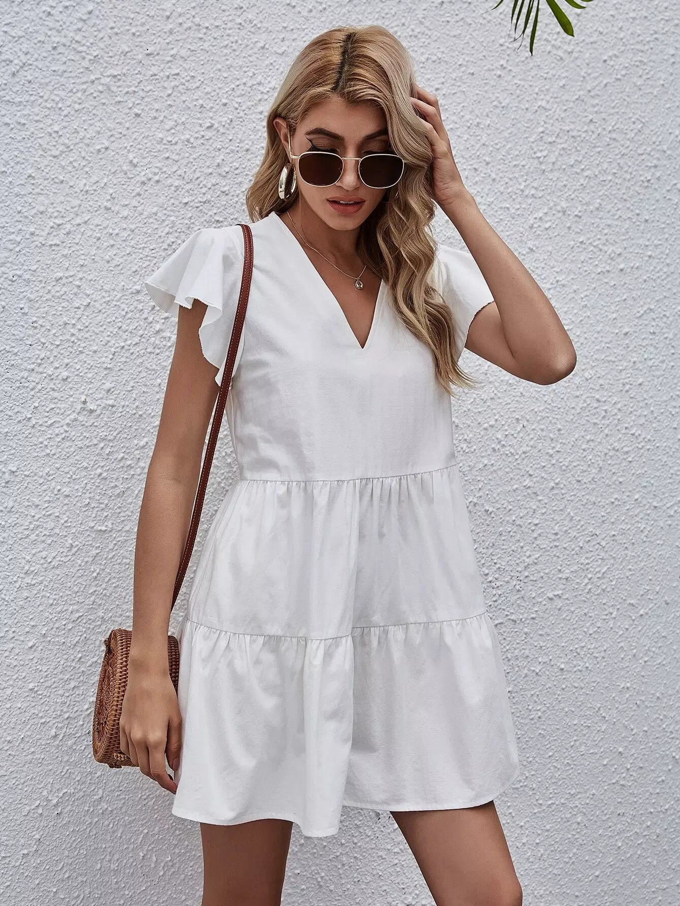 Women - Solid Butterfly Sleeve Babydoll Dress