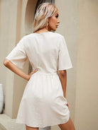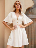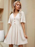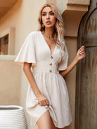 Women - Solid Button Front Butterfly Sleeve Tea Dress