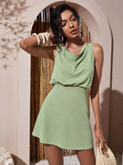 Solid Cowl Neck Tie Back Sleeveless Dress