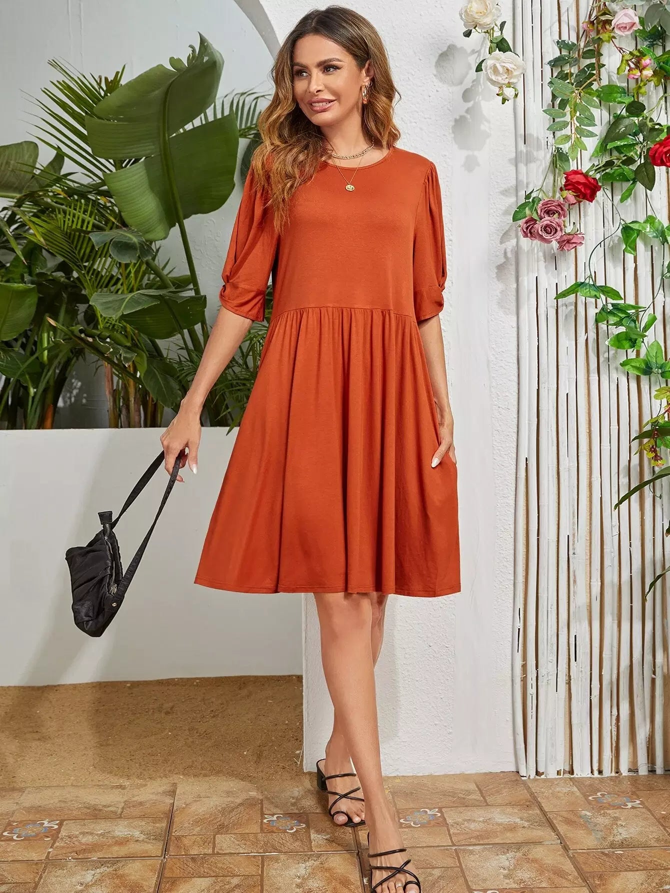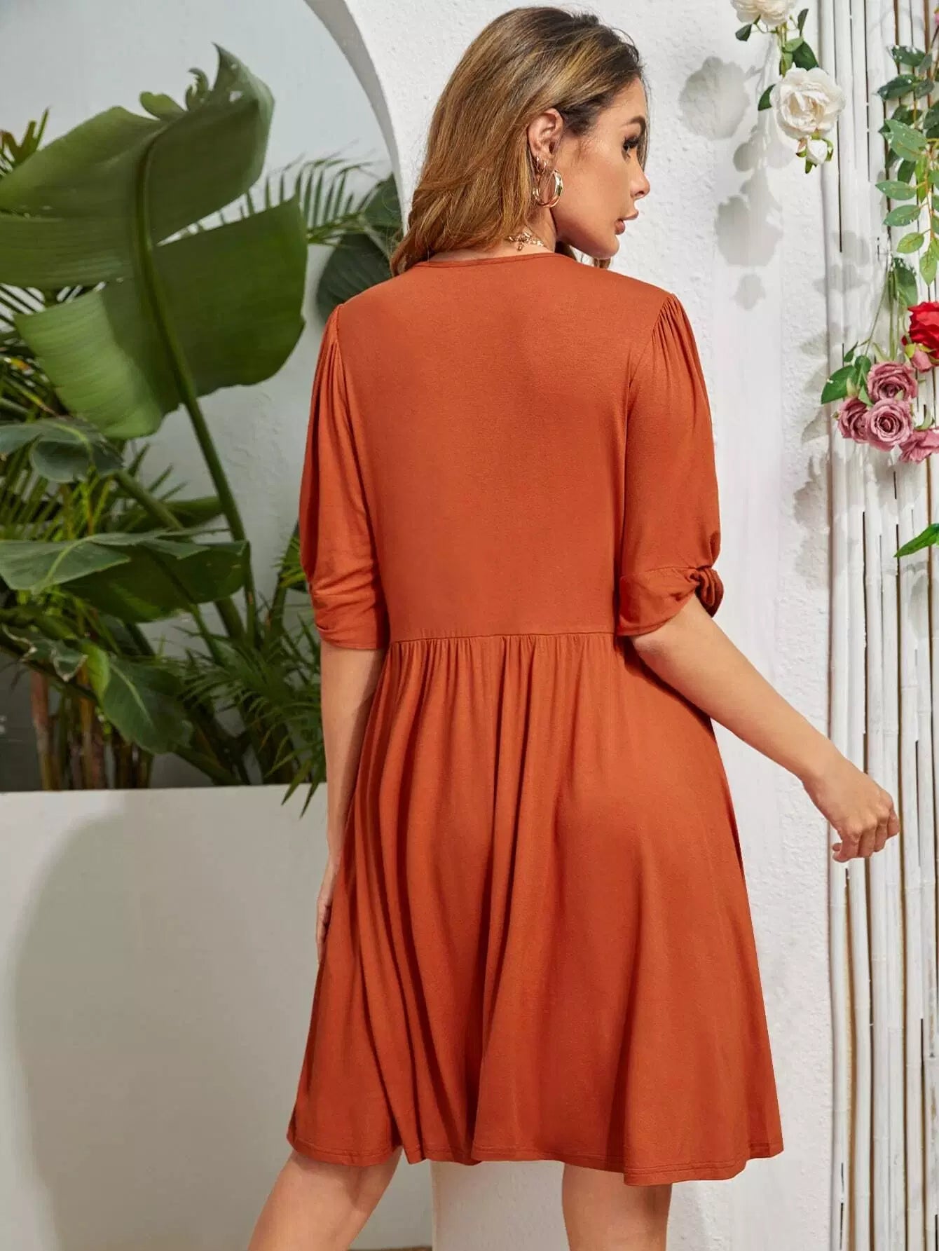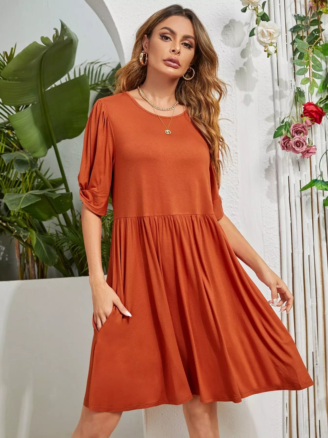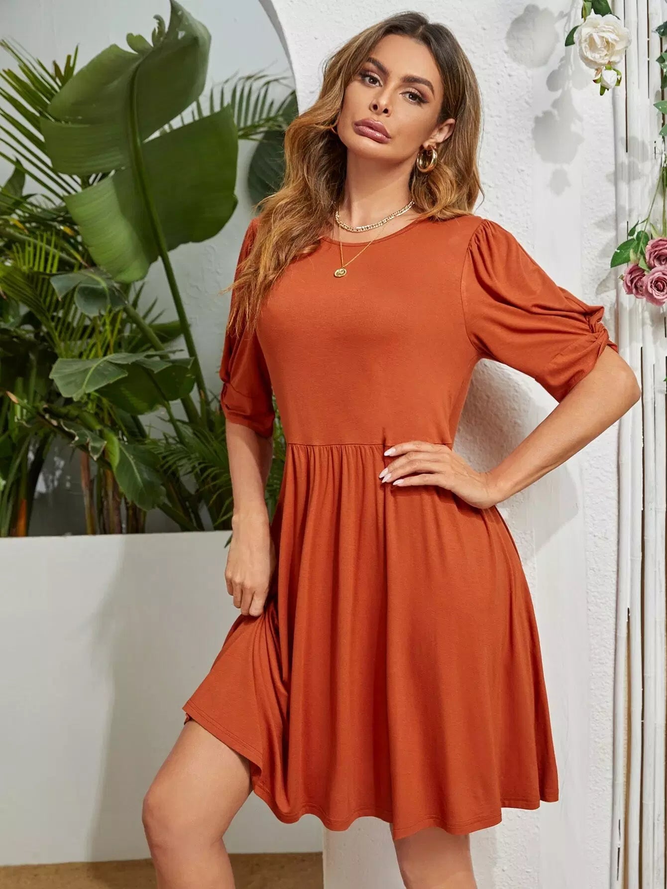 Solid Flared Hem Dress